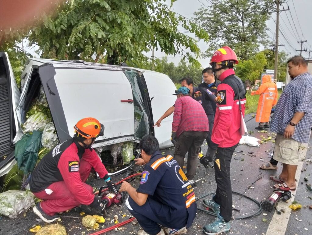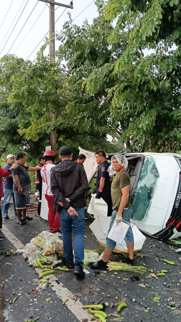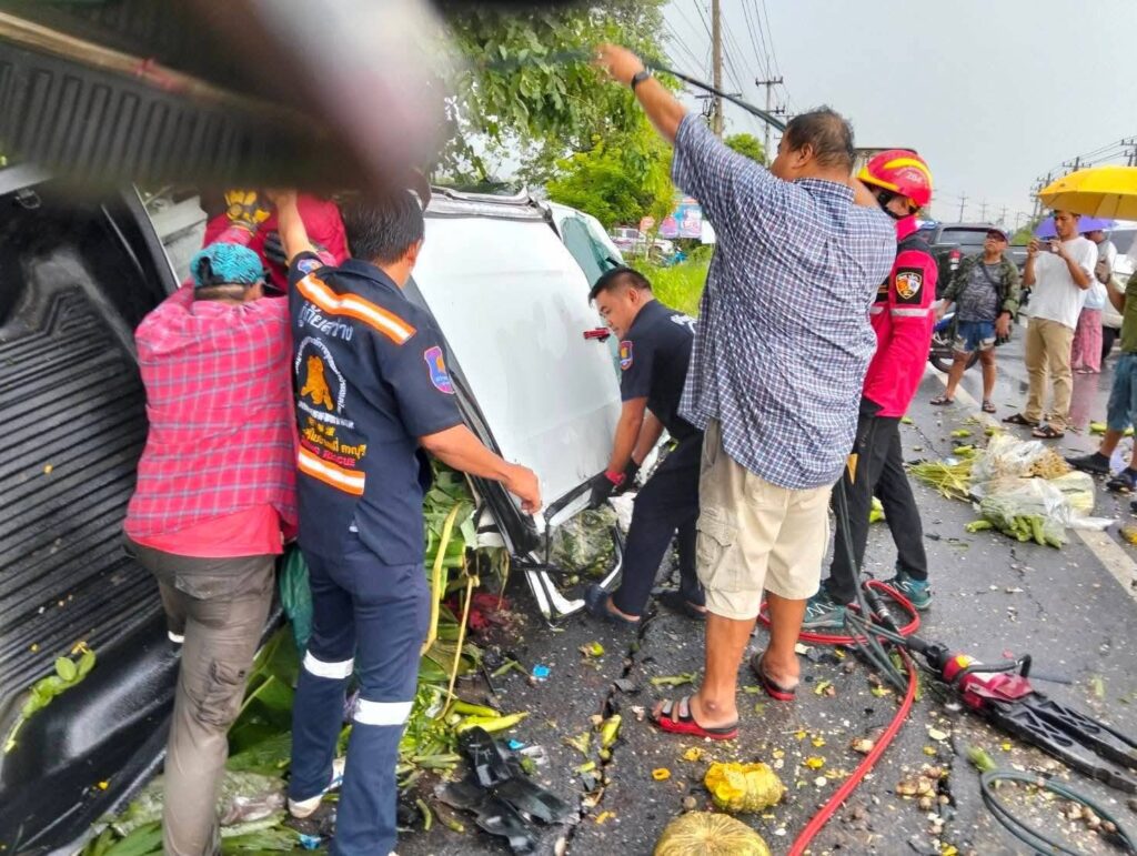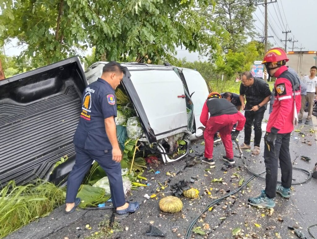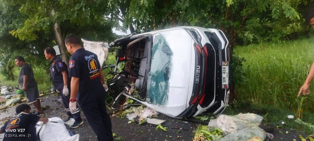 เกิดอุบัติเหตุ รถกระบะขนผักกลับจากตัวเมืองลพบุรี