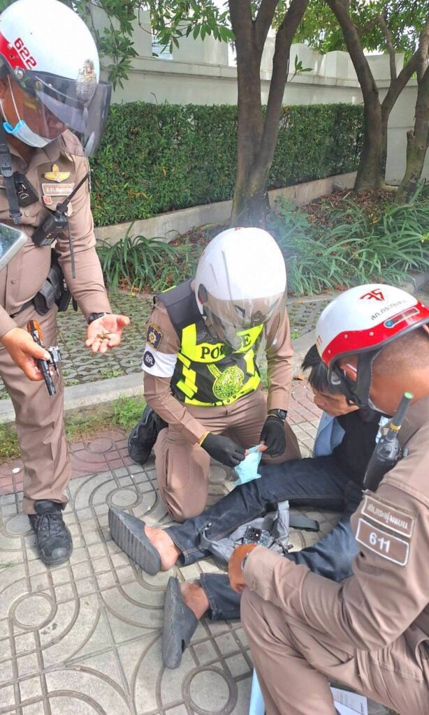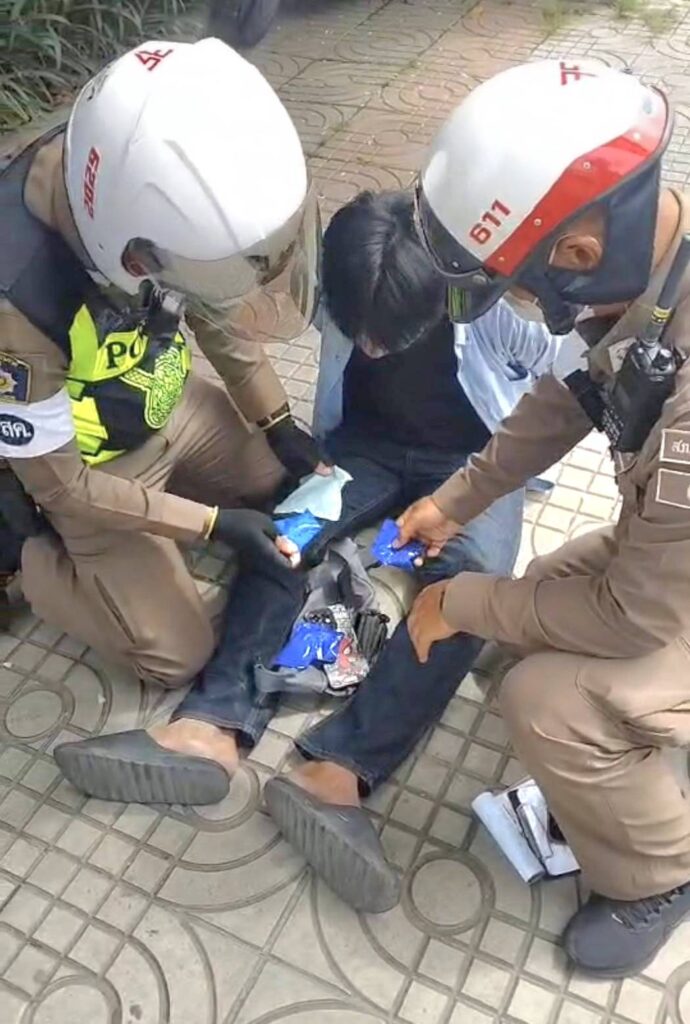ตร.จราจรกระทุ่มแบนตั้งด่านพบรถจยย.แต่งซิ่งเรียกตรวจ พบพิรุธฮืดฮัดขัดขืนถูกล็อคคาด่านพบทั้งปืนยาบายาไอซ์เพียบ
