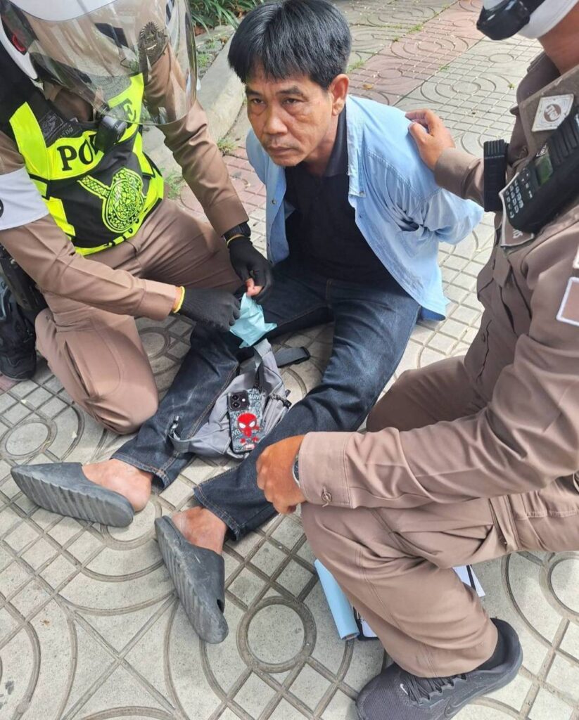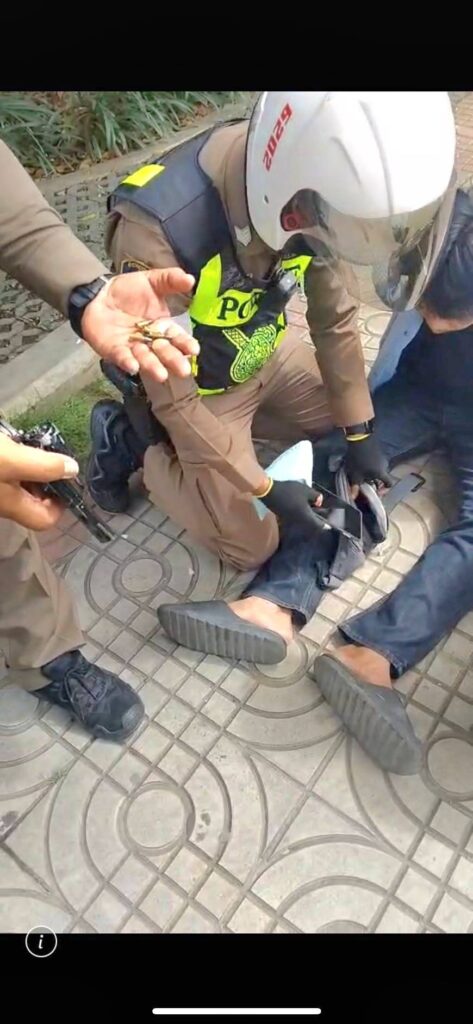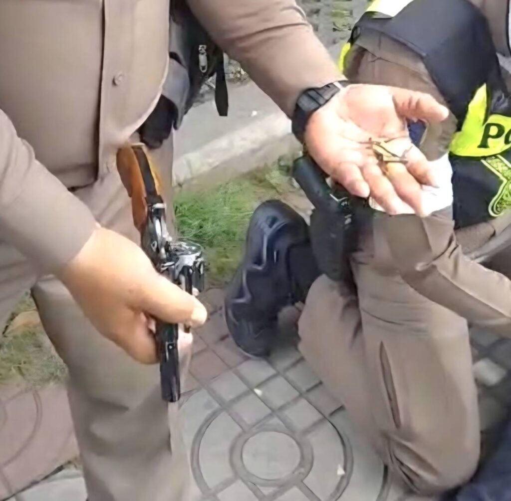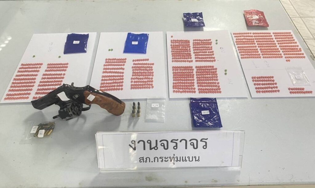 วันพุธที่ 2 กรกฎาคม พ.ศ.2568 ภายใต้การควบคุมของ พล.ต.ต.ธีระเดช อธิภัคกุล ผบก. ภ.จว.สมุทรสาคร ได้สั่งการให้ พ.ต.อ.สร ซื่อตรงพานิช ผกก.สภ.กระทุ่มแบน โดยมอบให้ พ.ต.ท.อาคม ตาใคร้ ตั้งจุดตรวจกวดขันวินัยจราจรขณะตั้งจุดตรวจ ร.ต.อ.ณัฐพล กิมเหล็ง รอง สว.จร. พร้อมเจ้าหน้าที่ตำรวจจราจรพบรถจักรยานยนต์ต้องสงสัยขับผ่านด้วยความเร็วไจึงเรียกตรวจพบผู้ขับขี่มีท่าทาพิรุทจึงขอตรวจค้นพบ อาวุธปืนอยู่ที่เอว ในตัวพบยาบ้า ยาไอซ์ จึงควบคุมตัวจับกุม ทราบชื่อ นายสมพงษ์ฯ อายุ 51 ปี คาด่านจราจร