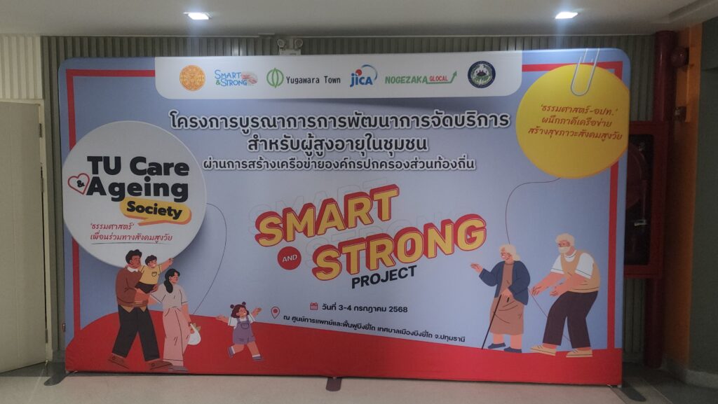 เมื่อวันที่ 3 ก.ค. 2568 ที่ ห้องประชุมชั้น 3 ศูนย์สันทนาการและพื้นฟูผู้สูงอายุบึงยี่โถ จ.ปทุมธานีมหาวิทยาลัยธรรมศาสตร์ (มธ.) ร่วมกับเทศบาลเมืองบึงยี่โถ องค์การความร่วมมือ ระหว่างประเทศแห่งญี่ปุ่น (JICA) และภาคีเครือข่ายภาควิชาการจากประเทศญี่ปุ่น จัดกิจกรรม TU Care & Ageing Society ธรรมศาสตร์ เพื่อนร่วมทางสังคมสูงวัย ครั้งที่ 2 ขึ้น โดยมี รศ. ดร.อรรถสิทธิ์ พานแก้ว ผู้ช่วยอธิการบดีฝ่ายกิจการพิเศษ มหาวิทยาลัยธรรรมศาสตร์ นายรังสรรค์ นันทกาวงศ์ นายกเทศมนตรีเมืองบึงยี่โถ Mr. Yoshifumi Naito นายกเทศมนตรีเมืองยูกาวะระ ประเทศญี่ปุ่น Mr. Yosuke Kobayashi เลขานุการเอก สถานเอกอัครราชทูตญี่ปุ่น ประจำประเทศไทย และ Mr. Naomasa Fukuda ผู้แทน JICA ประเทศไทย เข้าร่วมงาน ซึ่งมีสาระสำคัญ คือการถ่ายทอดองค์ความรู้และแลกเปลี่ยนผลการขับเคลื่อนงานตามโครงการการพัฒนาการจัดบริการสำหรับ ผู้สูงอายุในชุมชน ผ่านการสร้างเครือข่ายองค์กรปกครองส่วนท้องถิ่น (อปท.) ในประเทศไทย (SMART AND STRONG PROJECT) ที่ธรรมศาสตร์ ได้ให้บริการวิชาการสนับสนุนการยกระดับการจัดบริการสุขภาพใน อปท. 39 แห่ง ทั่วประเทศ