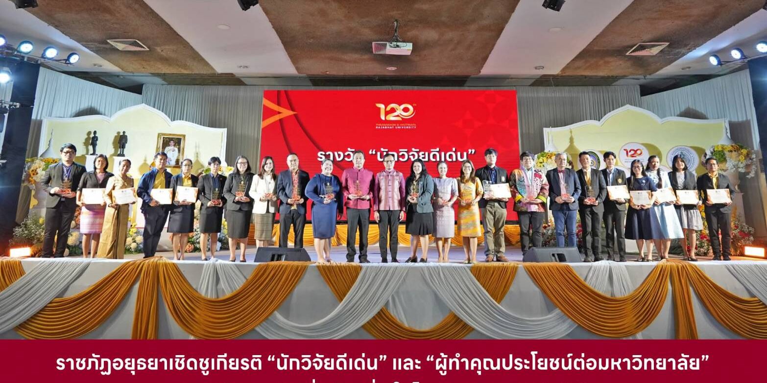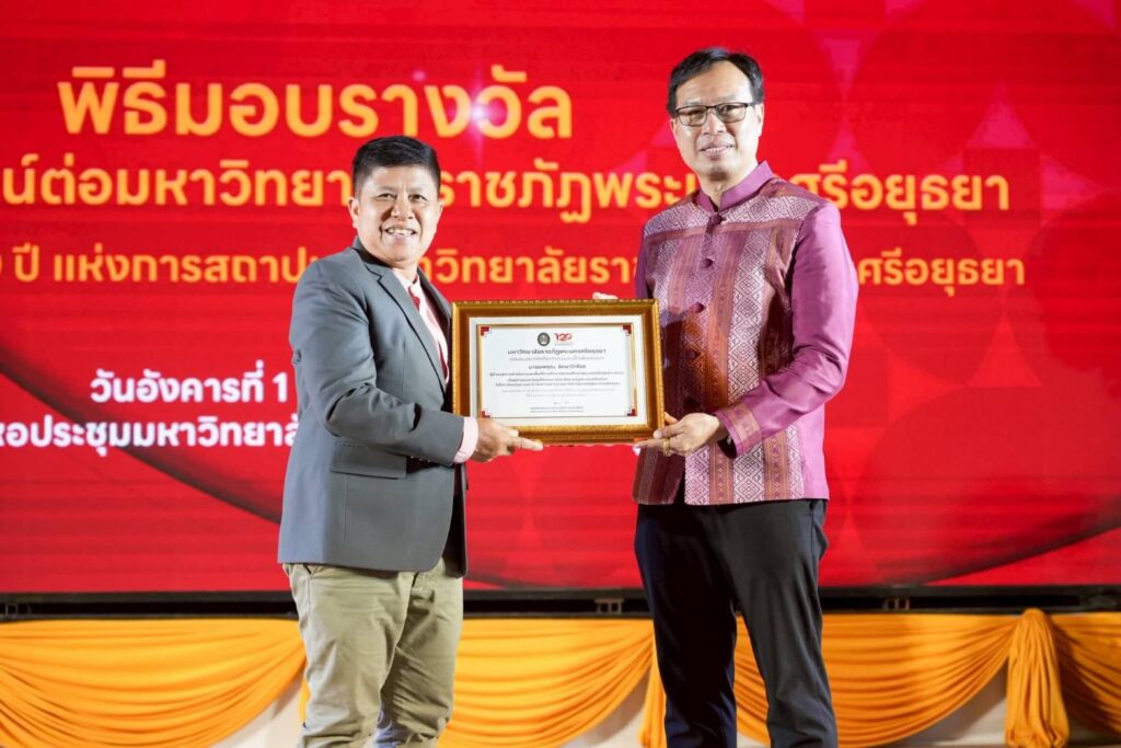 และมอบโล่รางวัลนักวิจัยดีเด่น และความร่วมมือกับภาคีเครือข่ายในพื้นที่ ซึ่งเป็นกลไกสำคัญในการขับเคลื่อนท้องถิ่นอย่างยั่งยืน ผู้ได้รับโล่รางวัลนักวิจัยดีเด่น ประเภทได้รับทุนสนับสนุนการวิจัยจากหน่วยงานภายนอก ,รางวัลจากผลงานสร้างสรรค์ ระดับนานาชาติ ,ประเภท มีผลงานตีพิมพ์ต่อเนื่องในวารสาร TCI 1 หรือวารสารนานาชาติ (พ.ศ. 2565–2567) ,ใบประกาศเกียรติคุณนักวิจัยดีเด่น ,รางวัลเครือข่ายความร่วมมือในการพัฒนาท้องถิ่นดีเด่น พิธีมอบรางวัลครั้งนี้นับเป็นอีกหนึ่งความภาคภูมิใจของมหาวิทยาลัยราชภัฏพระนครศรีอยุธยา ที่มุ่งมั่นเชิดชูเกียรติบุคลากรและเครือข่ายการพัฒนาท้องถิ่น พร้อมตอกย้ำบทบาท “มหาวิทยาลัยเพื่อท้องถิ่น” ที่ขับเคลื่อนงานวิจัย และสร้างความร่วมมืออย่างต่อเนื่องในระดับพื้นที่และระดับประเทศอย่างเป็นรูปธรรม