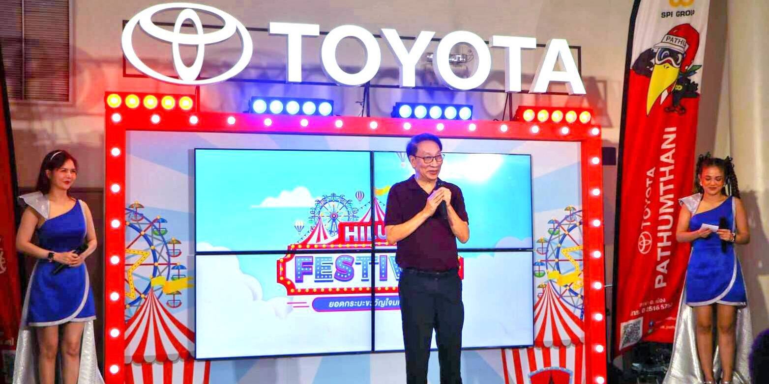 เมื่อวันที่ 4 กรกฎาคม 2568 เวลา 18:00 น. ที่โชว์รูม โตโยต้า ปทุมธานี สาขาอำเภอเมือง ได้จัดงานใหญ่แห่งปี “Hilux Festival: ยอดกระบะขวัญใจมหาชน” ระหว่างวันที่ 4–6 กรกฎาคม 2568 เพื่อส่งเสริมการตลาดและมอบประสบการณ์สุดพิเศษให้กับลูกค้าชาวปทุมธานีและจังหวัดใกล้เคียง งานนี้ได้รับเกียรติจาก คุณสถิตย์พงษ์ พรประภา กรรมการบริหาร บริษัท โตโยต้าปทุมธานี ผู้จำหน่ายโตโยต้า จำกัด เป็นประธานเปิดงาน พร้อมด้วย คุณประสิทธิ์ ไทรนนทรีย์ ผู้จัดการฝ่ายบริหารธุรกิจรถยนต์ ร่วมให้การต้อนรับแขกผู้มีเกียรติและลูกค้าที่เข้าร่วมงานอย่างอบอุ่น