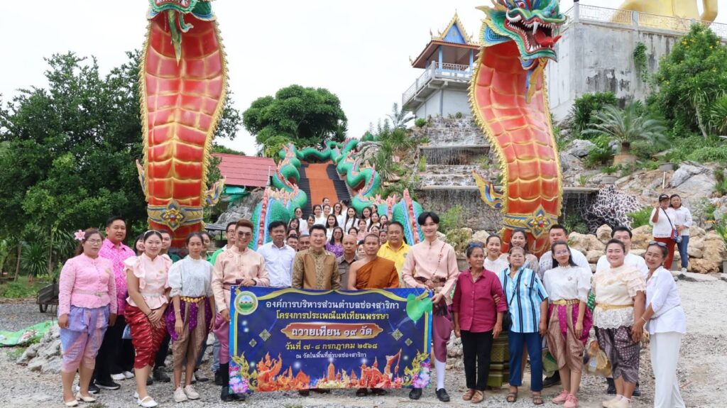 พร้อมเพรียงกันจัดกิจกรรมแห่เทียนเข้าพรรษา และถวายเทียนเข้าพรรษาแก่คณะสงฆ์ตามประเพณีของพุทธศาสนิกชน