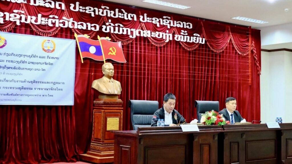 จากนั้น นางสาวอรวรรณ ปานคง ผู้อำนวยการสถาบันพัฒนาบุคลากรในกระบวนการยุติธรรม และ นายคณิศร ภาพีรนนท์ ผู้อำนวยการสำนักงานป้องกันและปราบปรามยาเสพติด ภาค 4 อดีตอัครราชทูตที่ปรึกษาด้านควบคุมยาเสพติดประจำสถานเอกอัครราชทูต ณ เวียงจันทน์ นำคณะยธส.16 สัมมนาร่วมกับหน่วยงานความมั่นคงของ สปป.ลาว ณ กรุงเวียงจันทน์ เพื่อหารือแนวทางบังคับใช้กฎหมาย ปรับปรุงแผนยุทธศาสตร์ด้านกฎหมาย และความร่วมมือด้านยาเสพติด โดยมีนายคำพร สีประเสิด หัวหน้ากรมร่วมมือสากล และนายชนกานต์ ธรรมมงกุฏ เลขานุการเอกอัครราชทูตไทย ให้การต้อนรับ