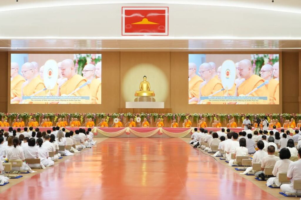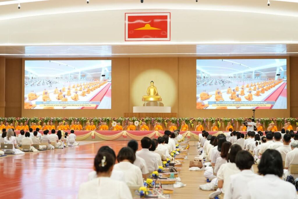วันที่ 10 กรกฎาคม 2568 ที่วัดพระธรรมกาย ตำบลคลองสาม อำเภอคลองหลวง จังหวัดปทุมธานี พุทธศาสนิกชนกว่า 10,000 คน พร้อมใจกันร่วมสืบสานพุทธประเพณี เนื่องในวันอาสาฬหบูชา และเข้าสู่เทศกาลเข้าพรรษา ด้วยกิจกรรมทำบุญตลอดวัน อาทิ พิธีถวายผ้าอาบน้ำฝน ถวายประทีปโคมไฟ ปฏิบัติธรรม และเวียนประทักษิณรอบพระมหาธรรมกายเจดีย์