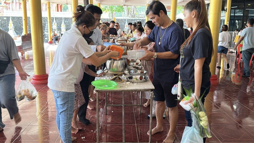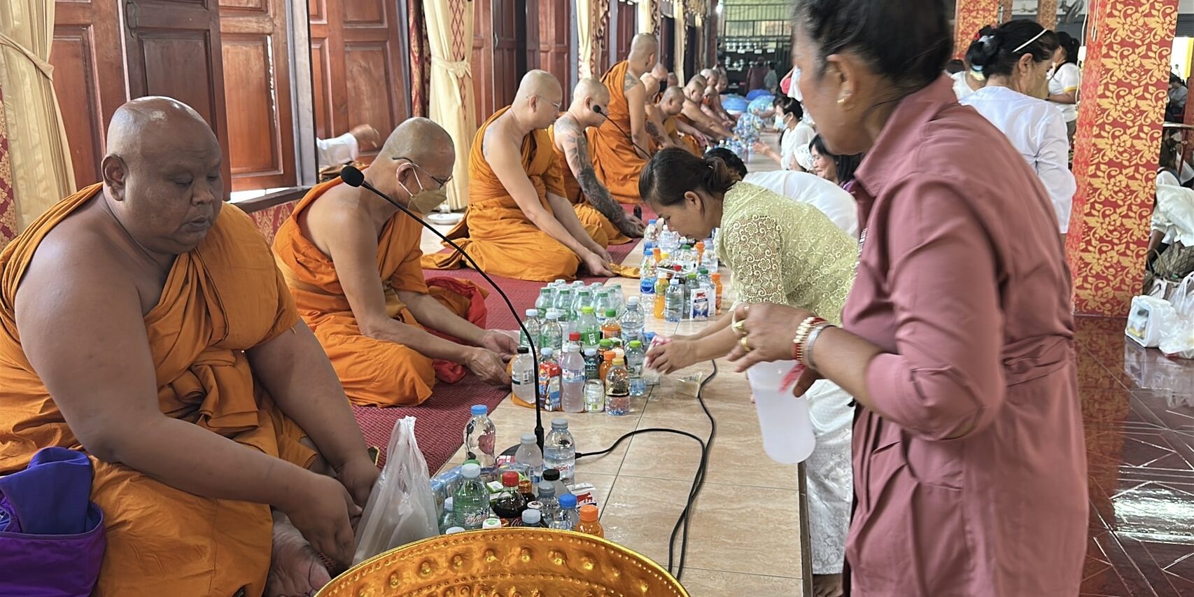 เมื่อเวลา 07.30 น. วันที่ 10 กรกฎาคม 2568 ผู้สื่อข่าวรายงานว่า ชาวเมืองพัทยาใน อ.บางละมุง จ.ชลบุรี และนักท่องเที่ยวทั้งไทยเทศหลายร้อยคน ร่วมกันนำข้าวสาร อาหารแห้ง อาหารหวานคาว ดอกไม้ธูปเทียน ร่วมประกอบพิธีทำบุญตักบาตรเนื่องในวันอาสาฬหบูชาที่วัดบุญสัมพันธ์ ซอยเขาน้อย โดยมีนายวันชัย แสนงาม รองนายกเทศมนตรีเมืองหนองปรือ พร้อมด้วยสมาชิกสภาเทศบาลเมืองหนองปรือ เข้าร่วมทำบุญตักบาตร ซึ่งทางวัดได้จัดให้มีการทำบุญตักบาตรในวันสำคัญทางพระพุทธศาสนา เพื่อให้เป็นศูนย์รวมของพุทธศาสนิกชนที่ต้องการทำบุญสืบสานวัฒนธรรมอันดีงามของพระพุทธศาสนาเอาไว้ โดยพุทธศาสนิกชนทั้งไทยเทศที่เข้าร่วมในพิธีนั้น ส่วนใหญ่เดินทางมาเป็นครอบครัวนำอาหารหวานคาว ข้าวสารอาหารแห้งมาร่วมกันตักบาตรถวายเป็นพุทธบูชา ซึ่งได้ร่วมกัน สวดมนต์อาราธนาศิล ฟังธรรม ก่อนจะร่วมกันถวายสังฆทานและกรวดน้ำ และในช่วงค่ำของคืนเดียวกันทางวัดยังได้จัดประกอบพิธีเวียนเทียนรอบอุโบสถและงานหล่อเทียนพรรษาเพื่อถวายเป็นพุทธบูชาอีกด้วย