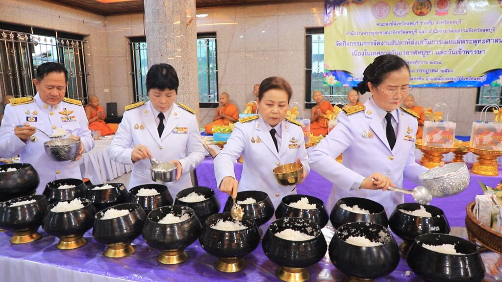 วันที่ 10 กรกฎาคม 2568 ที่ วัดกวิศราราม ราชวรวิหาร พระอารามหลวง ตำบลท่าหิน อำเภอเมืองลพบุรี จังหวัดลพบุรี นายอำพล อังคภากรณ์กุล ผู้ว่าราชการจังหวัดลพบุรี เป็นประธานฝ่ายฆราวาส นำหัวหน้าส่วนราชการ ภาคเอกชน นักเรียน และประชาชนร่วมพิธี ทำบุญตักบาตร และเวียนเทียน เนื่องในเทศกาลวันสำคัญทางพระพุทธศาสนา วันอาสาฬหบูชาและวันเข้าพรรษา และโครงการ “ผู้ว่าฯพาแต่งไทย หิ้วปิ่นโตทำบุญ เกื้อกูลพระพุทธศาสนา รักษาสิ่งแวดล้อม ”ประจำปีพุทธศักราช 2568 โดยมี พระธรรมวชิรสุนทร เจ้าคณะจังหวัดลพบุรี เป็นประธานฝ่ายสงฆ์และกล่าวสัมโมทนียกถา
