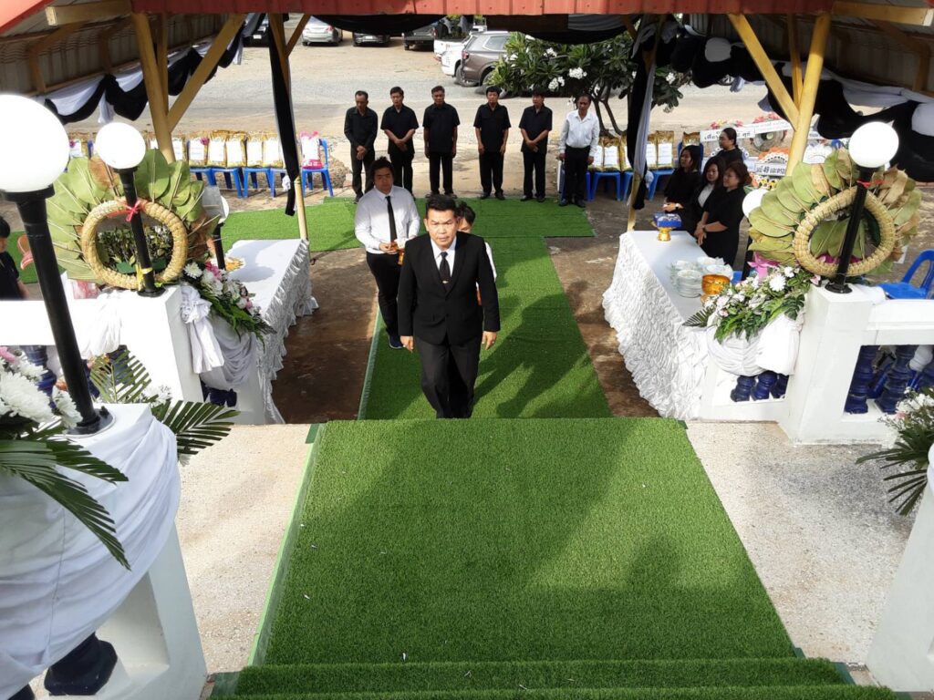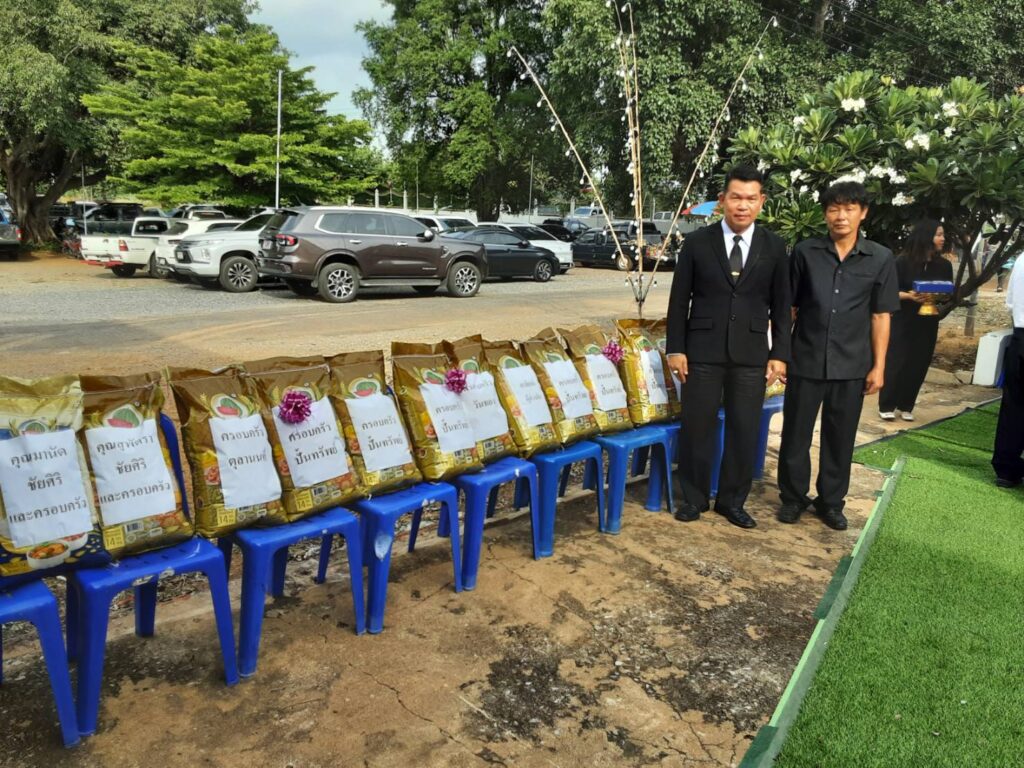 ผมจึงได้รณรงค์ เชิญชวนให้พี่น้องประชาชนในพื้นที่ผ่านกลไกทางกำนันผู้ใหญ่บ้าน ฯลฯองค์กรปกครองส่วนท้องถิ่น ให้ใช้ข้าวสารถุงละ15 กก. มาทำเป็นพวงหรีดแทน หลังจากเสร็จงานศพ เจ้าภาพก็จะนำข้าวสารจากพวงหรีดเหล่านี้ ไปมอบให้กับบุคคลผู้ที่ลำบากยากไร้ ขาดแคลน ขัดสน เป็นการทำบุญ อุทิศส่วนกุศลผลบุญนี้ต่อผู้ที่วายชนม์อีกทอดหนึ่ง