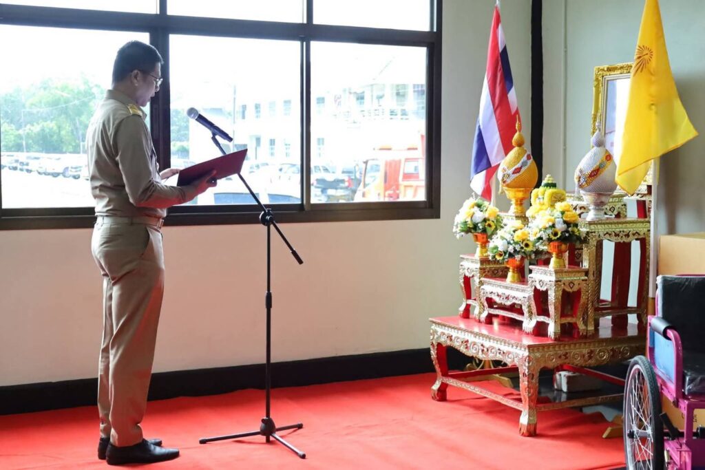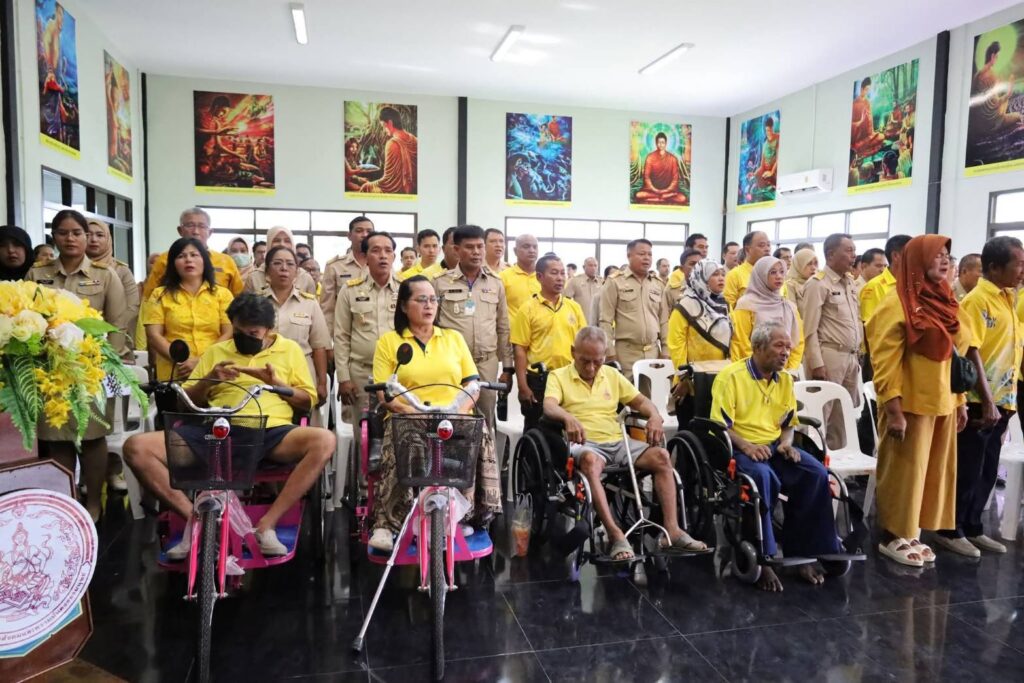 ภายในพิธีมีการเปิดกรวยกระทงดอกไม้ธูปเทียนแพ ถวายราชสักการะเบื้องหน้าพระบรมฉายาลักษณ์ พระบาทสมเด็จพระวชิรเกล้าเจ้าอยู่หัว พร้อมกล่าวราชสดุดีเฉลิมพระเกียรติ และร่วมแสดงความสำนึกในพระมหากรุณาธิคุณอย่างหาที่สุดมิได้ จากนั้น รองผู้ว่าราชการจังหวัดสตูล ได้กล่าวเปิดพิธี และเป็นประธานใน พิธีมอบกายอุปกรณ์เครื่องช่วยความพิการ ที่ได้รับการสนับสนุนจำนวน 238 ชิ้น ประกอบด้วย รถเข็นนั่ง จำนวน 160 คัน รถสามล้อชนิดมือโยก จำนวน 72 คัน และไม้เท้าขาว จำนวน 6 อัน ให้แก่ผู้แทนองค์กรปกครองส่วนท้องถิ่น เพื่อนำไปส่งต่อให้กับคนพิการในพื้นที่อย่างเหมาะสม โดยมีผู้พิการ ผู้ดูแล และเจ้าหน้าที่จากหน่วยงานที่เกี่ยวข้องเข้าร่วมในพิธีอย่างพร้อมเพรียง