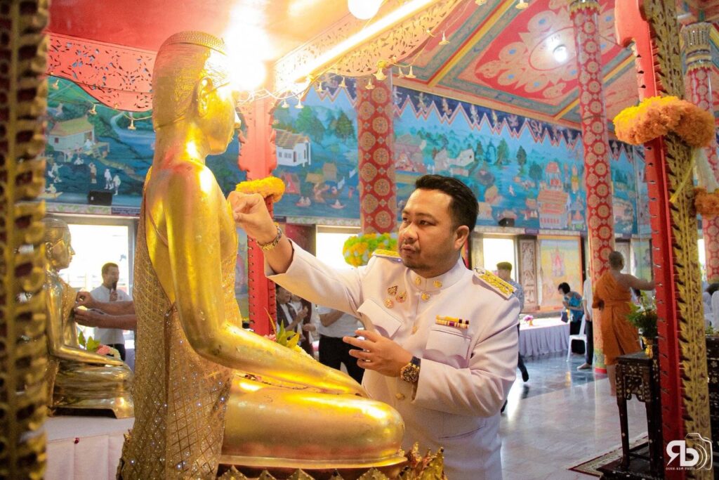 ขณะที่ภายในพิธีมีทางด้านพระครูสมุห์พรเทพ จันทโชโต (หลวงพี่ต้อม) เจ้าคณะตำบลเขาสมอคอน เจ้าอาวาสวัดถ้ำตะโก รักษาการเจ้าอาวาสวัดไลย์ ประธานฝ่ายสงฆ์ได้ถวายพวงมาลัย ปิดทอง และห่มผ้าองค์พระศรีอริยเมตไตรยองค์จำลอง และทำพิธีเบิกเนตรเป็นปฐมฤกษ์ หลังจากนั้นจึงให้ประชาชนร่วมปิดทองพระศรีอริยเมตไตรยองค์จำลองเพื่อความเป็นสิริมงคลต่อไป