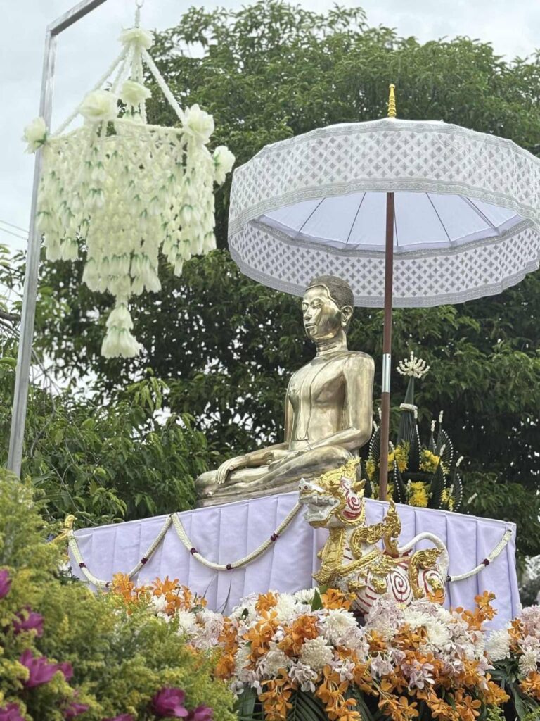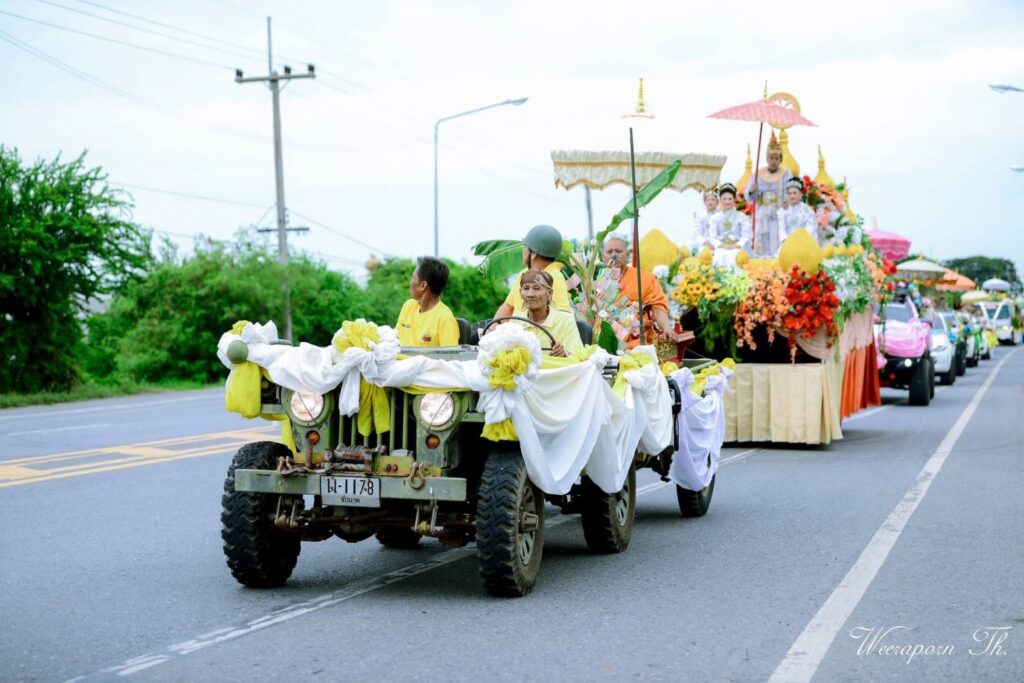 ซึ่งในช่วงเช้ามีการจัดขบวนแห่พระศรีอาริยเมตไตรย์ (องค์จำลอง 2 องค์) ที่ตกแต่งด้วยดอกไม้นานาชนิดสีสันสวยงามมาจากโรงหล่อ”ร็อคคล่าไฟน์อาร์ท” อ.ท่าวุ้ง จ.ลพบุรี เพื่อนำไปประดิษฐาน ณ.วัดไลย์