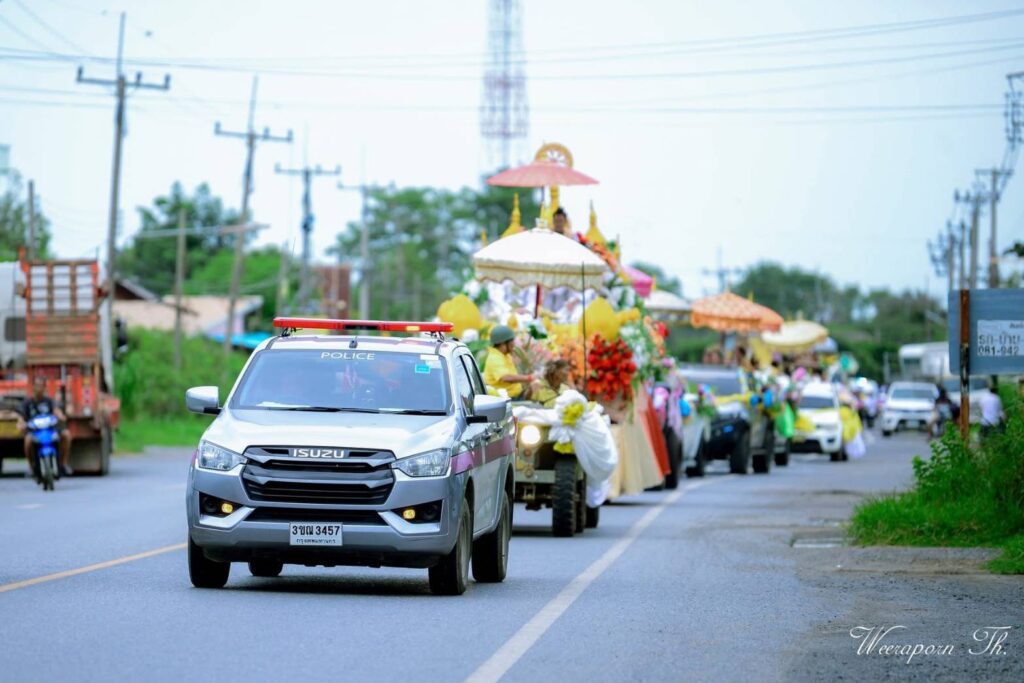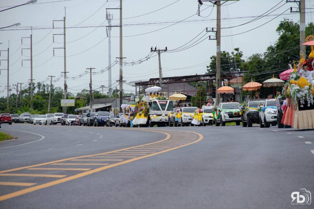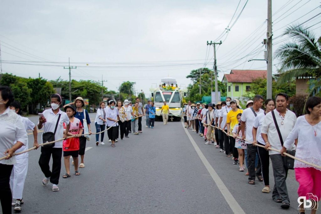 โดยขบวนได้เคลื่อนมาบนถนนบางงา – บ้านหมี่ และได้ร่วมกันชักลากแห่ไปตามตลาดท่าโขลง เพื่อให้ประชาชนได้ร่วมสักการะและทำบุญ เป็นสิริมงคล เนื่องวันเข้าพรรษาด้วย