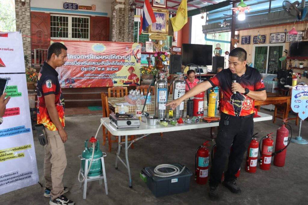วันที่ 15 กรกฎาคม 2568 เวลา 13.00 น. นางสาววไลศิริ ปาตั๋น นายกเทศมนตรีเมืองเขาสามยอด มอบหมาย นายสุรจิตร์ กล่ำวงศ์ รองนายกเทศมนตรีเมืองเขาสามยอด และฝ่ายป้องกันและบรรเทาสาธารณภัย จัดโครงการฝึกอบรมให้ความรู้ในการป้องกันและระงับอัคคีภัยในชุมชน ประจำปี 2568 เพื่อให้ชุมชนมีความรู้ความสามารถในการใช้เครื่องมือดับเพลิง ตลอดจนการระงับเหตุเพลิงไหม้ด้วยวิธีต่างๆ ได้อย่างถูกต้องและปลอดภัย ณ ชุมชนเขาสามยอด 1 อ.เมืองลพบุรี จ.ลพบุรี