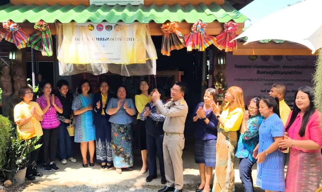 วันจันทร์ที่ ๑๔ กรกฎาคม ๒๕๖๘ เวลา ๑๓.๓๐ น.นายสุเมธ ธีรนิติ ผู้ว่าราชการจังหวัดสิงห์บุรี เป็นประธานพิธีเปิดโครงการต่อยอดลายผ้า พัฒนาเชิงสร้างสรรค์ สืบสานภูมิปัญญาไทย และพิธีเปิดกลุ่มทอผ้าหนองราชพัฒนา หมู่ที่ ๕ ตำบลท่าข้าม อำเภอค่ายบางระจัน จังหวัดสิงห์บุรี เพื่อเป็นการขับเคลื่อนโครงการ”ผ้าไทยใส่ให้สนุก”ตามพระดำริ สมเด็จพระเจ้าลูกเธอ เจ้าฟ้าสิริวัณณวรี นารีรัตนราชกัญญา อีกทั้งยังเป็นการส่งเสริมและอนุรักษ์ภูมิปัญญาการทอผ้าไทยของชุมชนให้คงอยู่และถ่ายทอดสู่คนรุ่นใหม่และเพื่อสร้างงาน สร้างอาชีพ สร้างรายได้และยกระดับคุณภาพชีวิตของคนในชุมชนผ่านอาชีพทอผ้า โดยมีนางวาสนา ธีรนิติ ประธานแม่บ้านมหาดไทยจังหวัดสิงห์บุรี/นายกเหล่ากาชาดจังหวัดสิงห์บุรี พร้อมด้วย นางสาววีรวรรณ จันทนเสวี รองผู้ว่าราชการจังหวัดสิงห์บุรี/รองประธานแม่บ้านมหาดไทยจังหวัดสิงห์บุรี/รองนายกเหล่ากาชาดจังหวัดสิงห์บุรี หัวหน้าส่วนราชการ สมาชิกชมรมแม่บ้านมหาดไทยจังหวัดสิงห์บุรี ร่วมพิธี และเยี่ยมชมนิทรรศการ ทั้งนี้ ประธานแม่บ้านมหาดไทยจังหวัดสิงห์บุรี/ นายกเหล่ากาชาดจังหวัดสิงห์บุรี ได้ให้เกียรติทอผ้าผืนแรกให้แก่กลุ่มทอผ้าหนองราชพัฒนาดังกล่าวด้วย