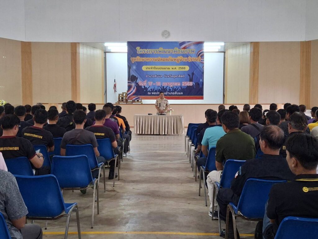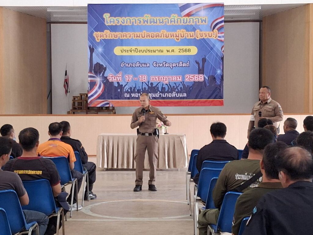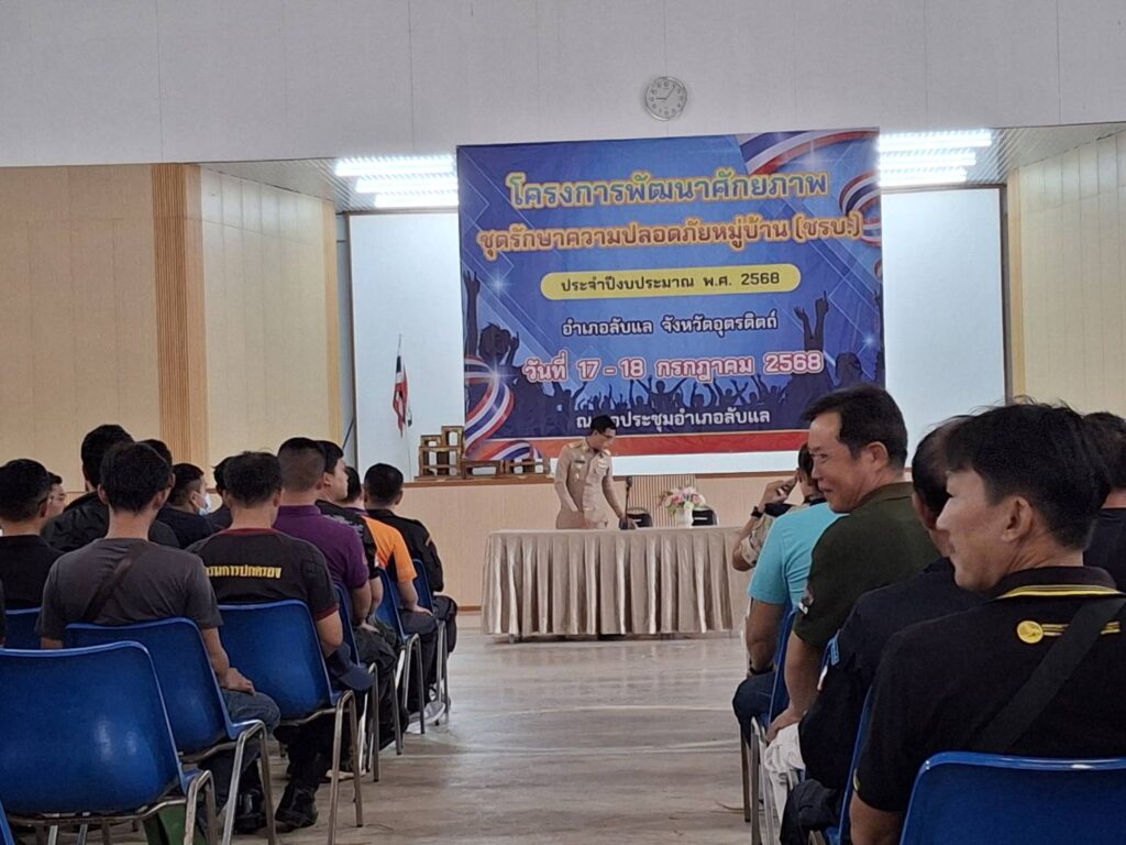 อุตรดิตถ์, 17 กรกฎาคม 2568 – เมื่อเวลา 09.00 น. ที่หอประชุมน้ำใส อำเภอลับแล จังหวัดอุตรดิตถ์ นายอำเภอลับแล นายสุรวุธ จันงามให้เกียรติเป็นประธานในพิธีเปิด โครงการพัฒนาศักยภาพชุดรักษาความปลอดภัยประจำหมู่บ้าน (ชรบ.) ประจำปีงบประมาณ 2568 โดยมีผู้แทนจากหัวหน้าส่วนราชการ, ผู้กำกับการสถานีตำรวจภูธรด่านแม่คำมัน, ผู้กำกับการสถานีตำรวจภูธรลับแล, หัวหน้าส่วนจากค่ายศรีพนมมาศ ปืนที่ 20, และหัวหน้าส่วนกลุ่มความมั่นคงอำเภอลับแล เข้าร่วมในพิธีอย่างพร้อมเพรียง