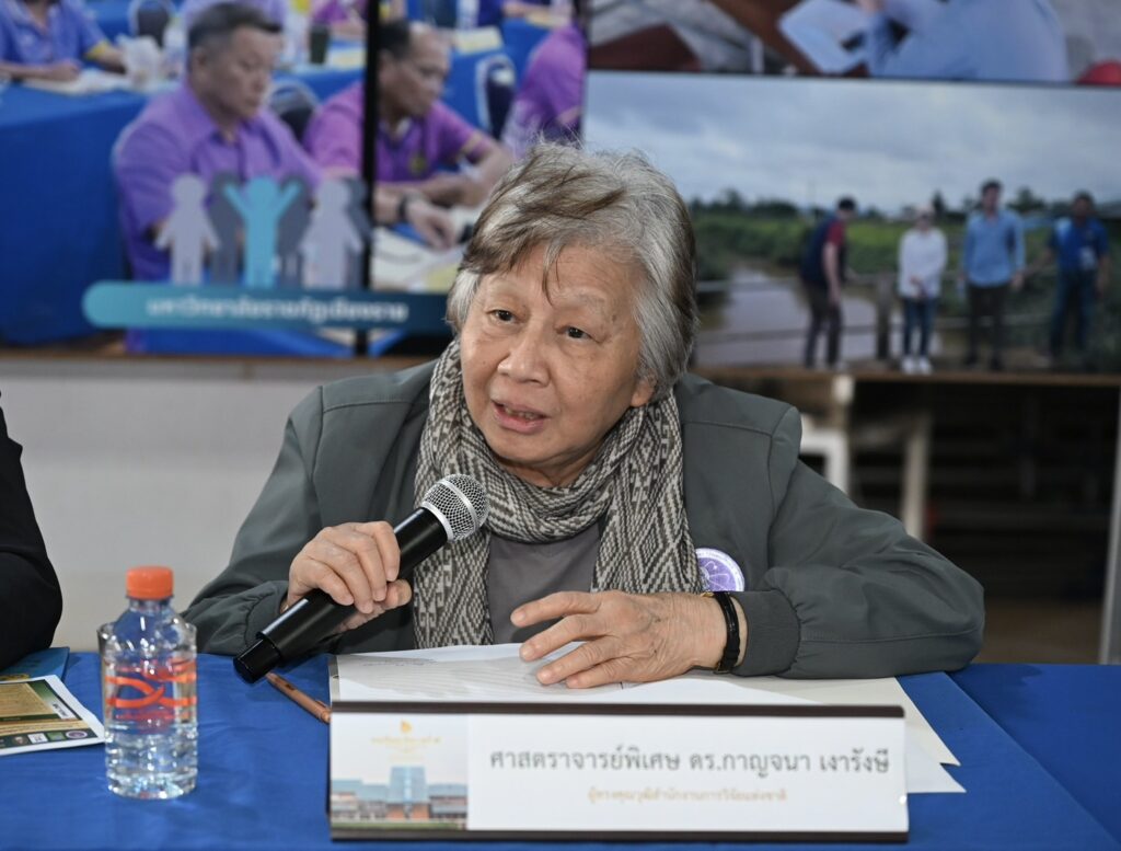 ดร.วิภารัตน์ ดีอ่อง ผู้อำนวยการสำนักงานการวิจัยแห่งชาติ (ผอ.วช.) กล่าวว่า (วช.) ได้สนับสนุนทุนวิจัยเพื่อขับเคลื่อนโครงการเสริมสร้างศักยภาพของชุมชนให้สามารถวางแผนและรับมือกับวิกฤตอุทกภัยอย่างเป็นระบบ ทั้งในระดับครัวเรือนและระดับหมู่บ้าน โดยผสานองค์ความรู้ส่งเสริมให้ประชาชนในพื้นที่มีส่วนร่วม เป็นผู้นำชุมชน หน่วยงานท้องถิ่น หรือภาคประชาสังคม โครงการนี้ถือเป็นต้นแบบสำคัญที่สะท้อนบทบาทของงานวิจัยและนวัตกรรมในการแก้ไขปัญหาเร่งด่วนของประเทศ ทั้งด้านการจัดทำแผนที่ความเสี่ยง การพัฒนาระบบเตือนภัยล่วงหน้า และการสร้างเครือข่ายความร่วมมือเพื่อรับมือกับภาวะวิกฤตน้ำท่วมอย่างยั่งยืน นำไปสู่การพัฒนาชุมชนที่เข้มแข็งและสามารถพึ่งพาตนเองได้ในระยะยาวด้วยวิจัยและนวัตกรรม