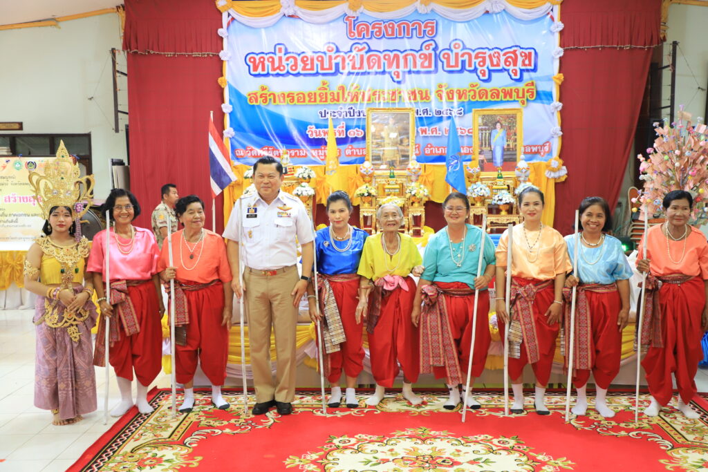 ในการนี้ รองผู้ว่าราชการจังหวัดลพบุรี และหัวหน้าส่วนราชการ ได้ร่วมกันมอบเงินกองทุนพัฒนาเด็กชนบทในพระราชูปถัมป์สมเด็จพระเทพรัตนราชสุดาฯ สยามบรมราชกุมารีในการอุปการะเด็กชนบท การมอบเงินสงเคราะห์ (พมจ.) ถุงยังชีพแก่ผู้ประสบปัญหาทางสังคม (กาชาด) จากนั้นได้เยี่ยมชมกิจกรรมการให้บริการประชาชนของส่วนราชการต่าง ๆ อาทิ การมอบเสื้อผ้าและรองเท้า จากสภากาชาดไทย. การรับบริจาคโลหิต จากภาคบริการโลหิตแห่งชาติที่ 2 จังหวัดลพบุรี การออกหน่วยแพทย์เคลื่อนที่จากโรงพยาบาลหนองม่วง การออกหน่วยบริการทำบัตรประชาชนของอำเภอหนองม่วง กิจกรรมทอดผ้าป่ากองทุนแม่ของแผ่นดิน การให้ความรู้ด้านกฎหมาย การออกบูธนิทรรศการและเปิดรับสมัครเข้าร่วมโครงการสังฆประชานุเคราะห์ “หนึ่งร้อย ร้อยดวงใจ” ของคณะสงฆ์จังหวัดลพบุรี การตัดผมฟรี การทำหมันสุนัขและแมว การจำหน่ายสินค้าอุปโภคบริโภคราคาประหยัด และบริการอื่น ๆ ให้ประชาชนในพื้นที่ ทั้งนี้ยังเป็นการพบปะระหว่างผู้บริหารของจังหวัดกับประชาชนในพื้นที่ห่างไกล ในการบำบัดทุกข์ บำรุงสุข สร้างรอยยิ้มให้ประชาชนอีกด้วย