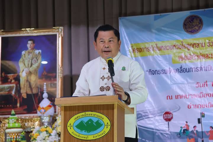 วันที่ 18 กรกฎาคม 2568 เวลา 09.00 น.นางสาววไลศิริ ปาตั๋น นายกเทศมนตรีเมืองเขาสามยอด พร้อมด้วยคณะผู้บริหาร เข้าร่วมโครงการรักในหลวงห่วงใยลูกหลานร่วมกันสร้างผู้นำจิตอาสา ด้านความปลอดภัยยั่งยืน เพื่อพิทักษ์เเละเทิดทูนสถาบันกษัตริย์ ภายใต้ “กิจกรรมขับเคลื่อนการดำเนินงานด้านความปลอดภัยทางถนนอย่างยั่งยืน” โดยมี นายปรัชญา เปปะตัง รองผู้ว่าราชการจังหวัดลพบุรี เป็นประธานในพิธีฯ ซึ่งโครงการนี้จะส่งผลให้ผู้เข้าร่วมอบรมได้รับความรู้ความเข้าใจที่ถูกต้องเกี่ยวกับสาเหตุของอุบัติเหตุ เเละการป้องกันอุบัติเหตุในการขับขี่ให้มีความปลอดภัย เเละเรียนรู้การจัดการความเสี่ยงบนถนน เพื่อให้มีความปลอดภัยต่อตนเองเเละผู้อื่น ณ อาคารอเนกประสงค์เทศบาลเมืองเขาสามยอด อำเภอเมืองลพบุรี จังหวัดลพบุรี