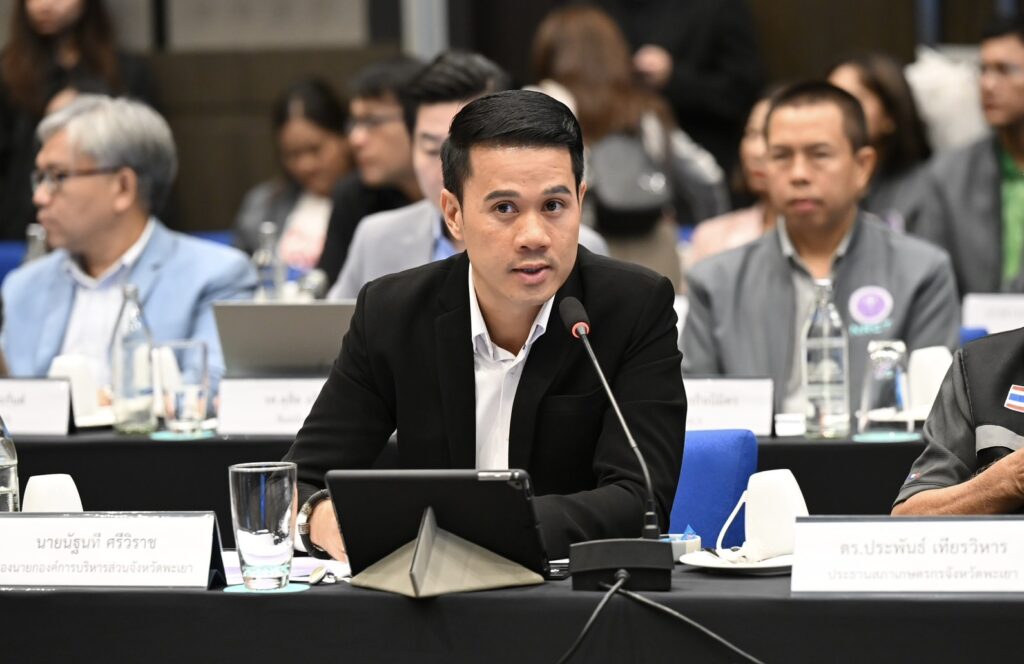 นายภูธนะ ชมภูมิ่ง รองผู้ว่าราชการจังหวัดพะเยา กล่าวว่า จังหวัดพะเยามีความยินดีเป็นอย่างยิ่งที่ได้ร่วมเป็นส่วนหนึ่งของความร่วมมือในครั้งนี้ ซึ่งถือเป็นโอกาสสำคัญในการยกระดับการพัฒนาพื้นที่อย่างยั่งยืนผ่านการใช้องค์ความรู้จากงานวิจัยและนวัตกรรม ความร่วมมือระหว่าง วช. และภาคีเครือข่ายในพื้นที่ จะช่วยขับเคลื่อนการแก้ไขปัญหาสิ่งแวดล้อม โดยเฉพาะการจัดการทรัพยากรน้ำและฝุ่นละออง PM2.5 อย่างเป็นระบบและสอดคล้องกับบริบทของพื้นที่ เราเชื่อมั่นว่า ความร่วมมือในวันนี้จะนำไปสู่การเปลี่ยนแปลงที่ดีในระดับชุมชน และเป็นรากฐานที่เข้มแข็งในการพัฒนาคุณภาพชีวิตของประชาชนในจังหวัดพะเยาอย่างแท้จริง