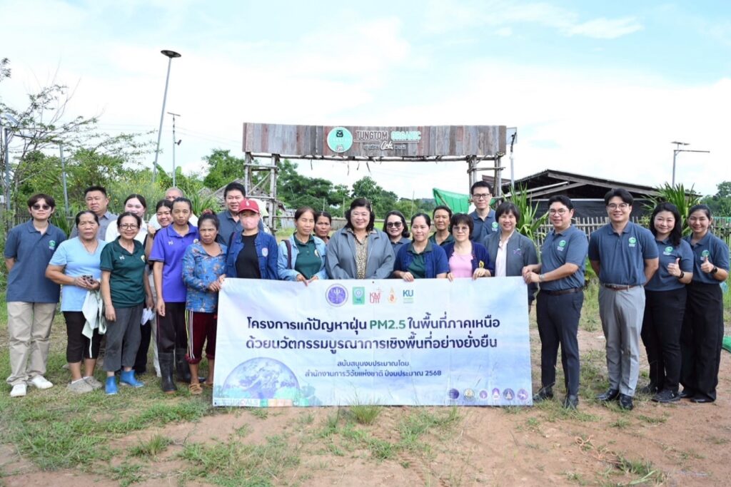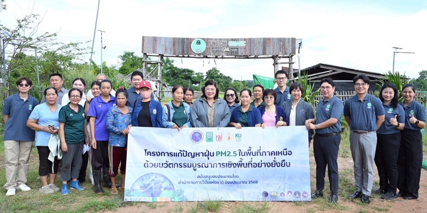 รศ.ดร.อนรรฆ ขันธะชวนะ หัวหน้าโครงการ และคณะ จาก มหาวิทยาลัยเทคโนโลยีพระจอมเกล้าธนบุรี กล่าวว่า จากปัญหาหมอกควันและฝุ่น PM2.5 ในพื้นที่ภาคเหนือของประเทศไทย โดยเฉพาะในจังหวัดเชียงรายและพะเยา เกิดจากการเผาวัสดุเหลือใช้ทางการเกษตรในระดับสูง จนนำไปสู่การเกิดจุดความร้อน (Hotspot) และค่าฝุ่นละออง PM2.5 ที่อยู่ในระดับวิกฤตต่อเนื่องทุกปี ปัญหานี้ส่งผลกระทบต่อสิ่งแวดล้อม และกระทบต่อสุขภาพของประชาชนโดยตรง งานวิจัยจึงถูกนำมาใช้เป็นกลไกในการแก้ไขปัญหาอย่างเป็นระบบ โดยโครงการวิจัยนี้มุ่งลดการเผาในพื้นที่เกษตรกรรม โดยเฉพาะในแหล่งปลูกข้าวและข้าวโพด ผ่านแนวคิด “ลดเผา เพิ่มรายได้ แก้ปัญหาได้จริง” ด้วยการพัฒนาเทคโนโลยีเตาเผาถ่านไบโอชาร์ประสิทธิภาพสูง และการแปรรูปวัสดุเหลือใช้เป็นผลิตภัณฑ์ชีวภาพ เช่น น้ำส้มควันไม้ ปุ๋ยอินทรีย์ อิฐปลูกกล้วยไม้ และบรรจุภัณฑ์จากฟาง พร้อมสร้างแพลตฟอร์มตลาดออนไลน์เพื่อเพิ่มช่องทางจำหน่าย โครงการนี้ดำเนินงานแบบ Plug-in Solution ที่สามารถนำไปใช้ได้ทันที โดยอาศัยความร่วมมือระหว่างนักวิจัย ภาครัฐ เอกชน และชุมชนในพื้นที่ ตั้งเป้าลดการเผาในพื้นที่เป้าหมายไม่น้อยกว่า 50% ตั้งแต่ปีแรก พร้อมสร้างรายได้จากผลิตภัณฑ์ทดแทน และลดจำนวนผู้ป่วยจากโรคทางเดินหายใจ นำไปสู่การเปลี่ยนผ่านสู่ระบบเกษตรกรรมยั่งยืนในระดับพื้นที่ และขยายผลสู่ภาคเหนือในระยะยาว