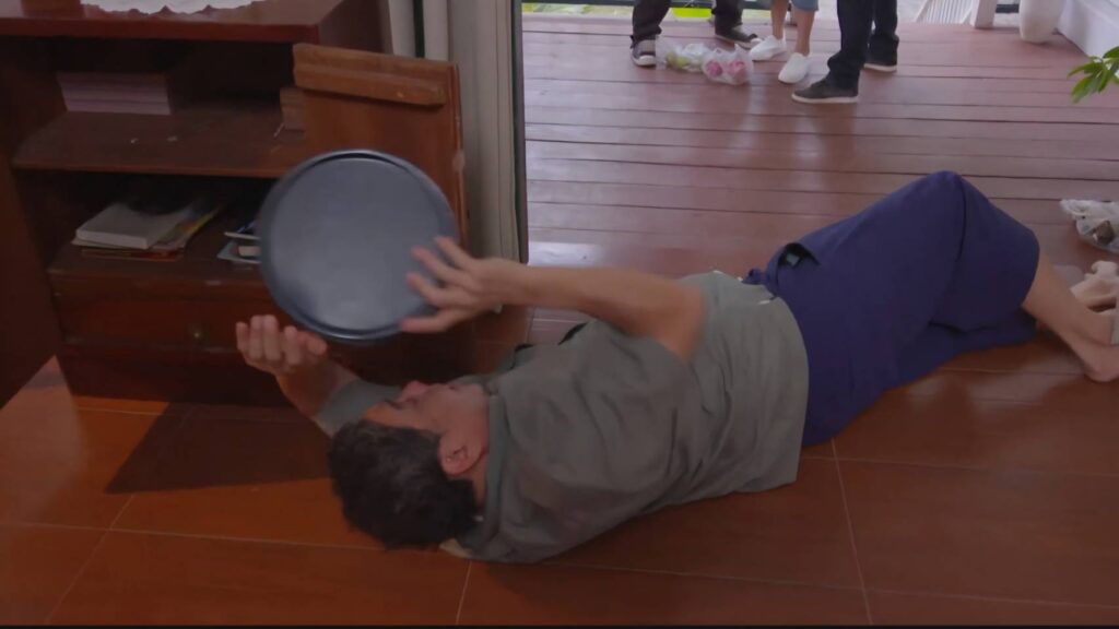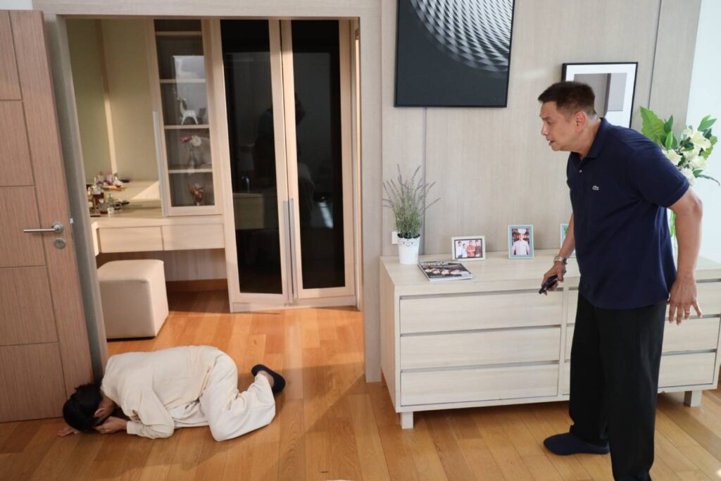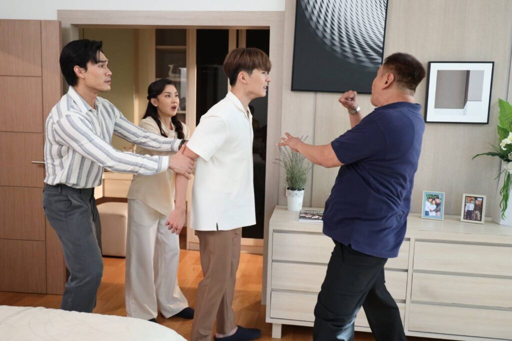 . ส่วนอีกฉากเป็นฝั่งของครอบครัว “กบิล” ที่ใช้บ้านแถว รามอินทรา เป็นสถานที่ถ่ายทำ นักแสดงที่เข้าฉากครบ พ่อแม่ลูก ทั้ง “อนันต์” ผู้เป็นพ่อ “รมฤดี” (น้ำทิพย์ เสียมทอง) ผู้เป็นแม่ และสองลูกชาย “กบิล” และ “มุทธา” เริ่มต้นการถ่ายในฉากที่ “อนันต์” แอบเห็นรูปในมือถือของ “มุทธา” ซึ่งทำให้ “อนันต์” โมโหมากและมีปากเสียงกัน “กบิล” เข้ามาเห็นเหตุการณ์และห้ามปรามทั้งคู่ แต่เหมือนอารมณ์ของพ่อและลูกเข้าขั้นพีคสุดขีด!!!