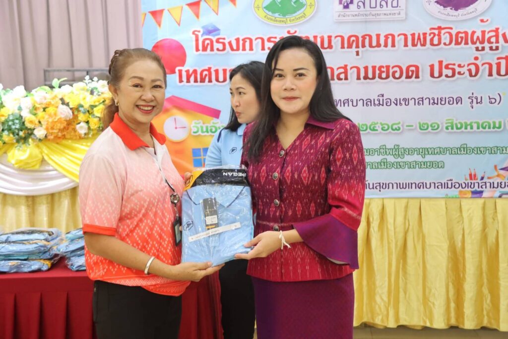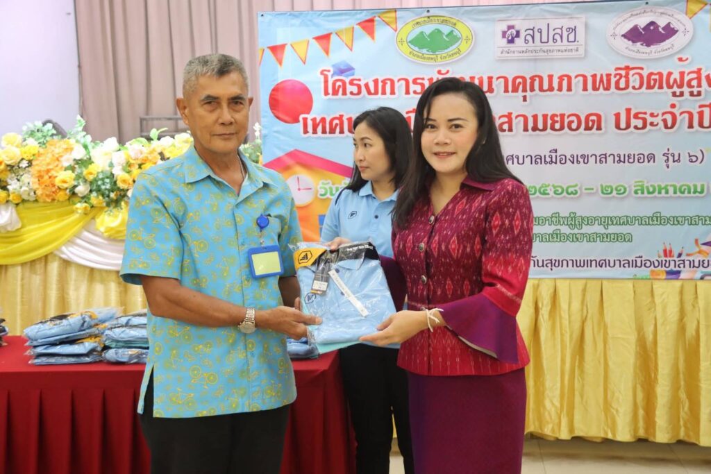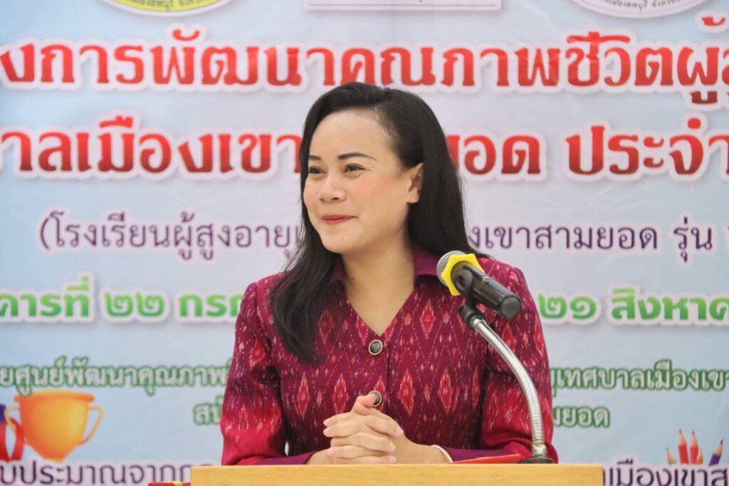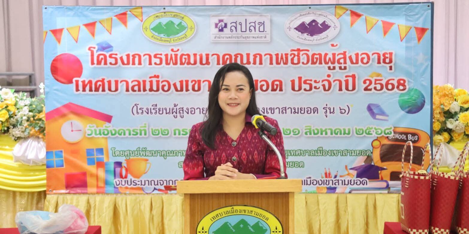นางสาววไลศิริ ปาตั๋น นายกเทศมนตรีเมืองเขาสามยอด เป็นประธานในพิธีเปิดโครงการพัฒนาศักยภาพผู้สูงอายุ เทศบาลเมืองเขาสามยอด ( โรงเรียนผู้สูงอายุ รุ่นที่ 6 ) พร้อมด้วยคณะผู้บริหาร หัวหน้าส่วนราชการ สมาชิกสภาเทศบาล และนักเรียนผู้สูงอายุรุ่นที่ 1 – 5 เข้าร่วมในพิธีฯ โดยนางเตือนใจ จอกเล็ก ประธานศูนย์พัฒนาคุณภาพชีวิตและส่งเสริมอาชีพ เทศบาลเมืองเขาสามยอด กล่าวรายงานความเป็นมาและวัตถุประสงค์ พร้อมด้วย ดร.ณรงค์ ศรีธรรมา บรรยายการพัฒนาคุณภาพชีวิตประชาชนธรรมนูญผู้สูงอายุ ร.ต.พงษ์พิสิทธิ์ กลั่นความดี เป็นวิทยากรในกิจกรรมนันทนาการการปรับตัวเพื่อให้ชีวิตมีความสุขในวัยผู้สูงอายุ และน.ส.สุจิตรา เกยุราพันธ์ พยาบาลวิชาชีพ อบรมให้ความรู้การฝึกคัดกรองสุขภาวะและการฝึกวัดสัญญาณชีพเบื้องต้น