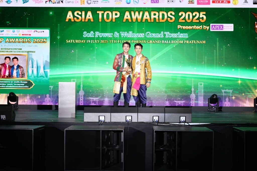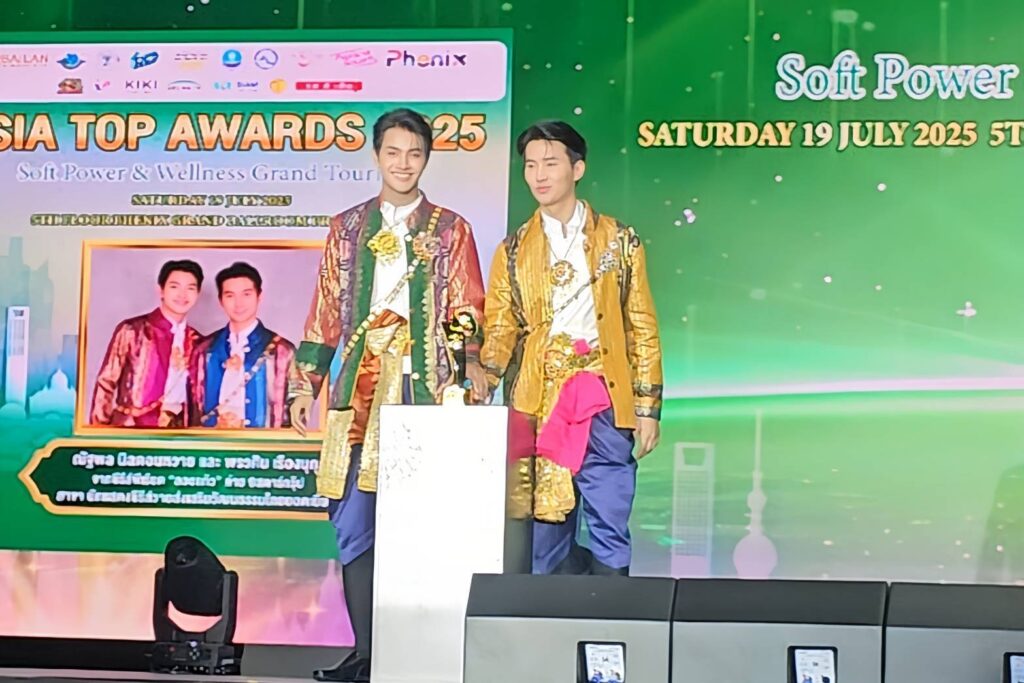 ในงาน Asia Top Awards 2025 ที่จัดขึ้นอย่างยิ่งใหญ่ ณ ห้องบอลรูม Phenix Grand Ballroom ประตูน้ำ เมื่อวันที่ 19 กรกฎาคม 2568 ภายใต้คอนเซ็ปต์ “Soft Power & Wellness Grand Tourism” สองนักแสดงนำจากซีรีส์วายพีเรียดสุดฮิต “ลอยแก้ว First Love” ได้แก่ ณัฐพล นิลดอนหวาย (เล้ง) และ พรวศิน เรืองนุกูล (แสตมป์) ได้รับรางวัลอันทรงเกียรติ “นักแสดงซีรีส์วายส่งเสริมวัฒนธรรมไทยยอดเยี่ยม”