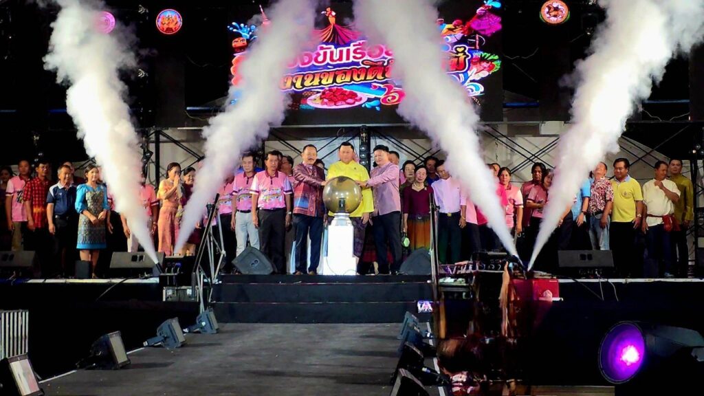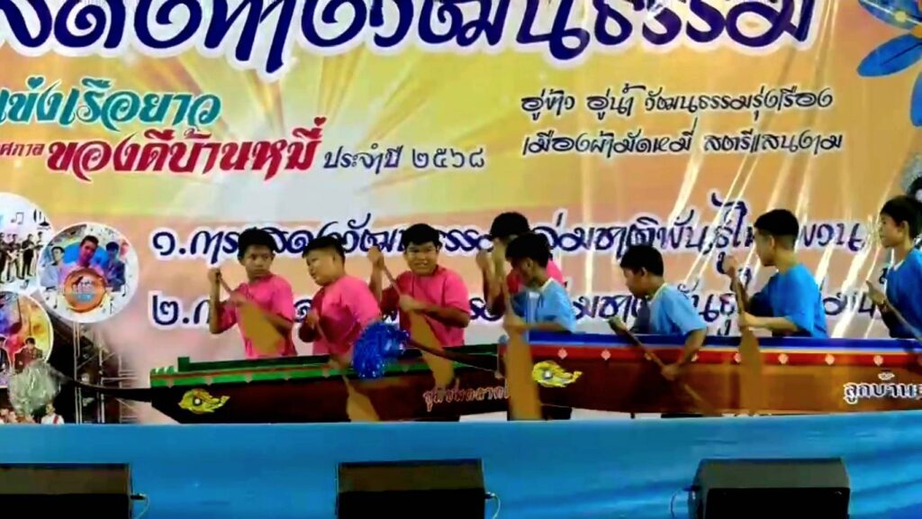 ที่ เวทีกลาง บริเวณสวนสาธารณะเฉลิมพระเกียรติ ตำบลบ้านกล้วย อำเภอบ้านหมี่ จังหวัดลพบุรี นายปรัชญา เปปะตัง รองผู้ว่าราชการจังหวัดลพบุรี พร้อมด้วย ดร.สุชาติ ลายน้ำเงิน ประธานมูลนิธิน้ำสะอาดเพื่อชีวิต และนายณภัทร เอมอ่อน นายอำเภอบ้านหมี่ และนายกองค์การบริหารส่วนในพื้นที่ ร่วมกัน เปิดงาน ประเพณีแข่งขันเรือยาว และเทศกาลของดีบ้านหมี่ ประจำปี 2568 เมืองอู่ข้าวอู่น้ำ วัฒนธรรมล้ำค่า แดนผ้ามัดหมี่ สตรีแสนงาม โดยมีประชาชนมาร่วมงานเป็นจำนวนมาก