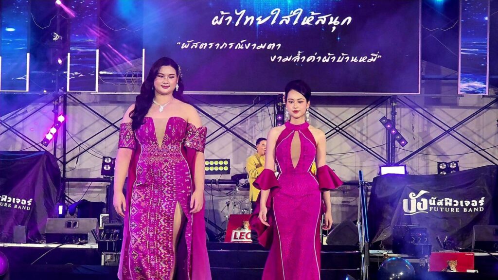 ซึ่งก่อนการเปิดงาน นายปรัชญา เปปะตัง รองผู้ว่าราชการจังหวัดลพบุรี พร้อมด้วย ดร.สุชาติ ลายน้ำเงิน ประธานมูลนิธิน้ำสะอาดเพื่อชีวิต และนายณภัทร เอมอ่อน นายอำเภอบ้านหมี่ ตลอดจน หัวหน้าส่วนราชการ และหน่วยงานองค์กรปกครองส่วนท้องถิ่นในพื้นที่อำเภอบ้าหมี่ ยังได้ร่วมกัน เดินแบบผ้าไทย ซึ่งเป็นผ้าทอมัดหมี่ ลายพระราชทาน ด้วยฝีมือการตัดเย็บอันประณีต สวยงาม ตามสไตล์ผ้ามัดหมี่ ของแต่ละชุมชน ซึ่งถือเป็นเอกลักษณ์และมรดกทางวัฒนธรรมผ้าทอมืออันเกิดจากภูมิปัญญาชาวบ้านที่โดดเด่นของอำเภอบ้านหมี่ ภายใต้ Theme งาน “ผ้าไทยใส่ให้สนุก” ตามแนวพระดำริสมเด็จพระเจ้าลูกเธอ เจ้าฟ้าสิริวัณณวรี นารีรัตนราชกัญญาการส่งเสริมและพัฒนาภูมิปัญญาผ้าไทย ตลอดจนเป็นการ ขับเคลื่อนและสืบสานพระราชปณิธานของสมเด็จพระนางเจ้าสิริกิติ์พระบรมราชินีนาถ พระบรมราชชนนีพันปีหลวง ในการสร้างงาน สร้างอาชีพ สร้างรายได้ ให้กับผู้ประกอบการผ้าไทย อนุรักษ์ผ้าไทยให้คงอยู่คู่แผ่นดิน ซึ่งถือเป็นการรณรงค์การสวมใส่ผ้าไทย ด้วย