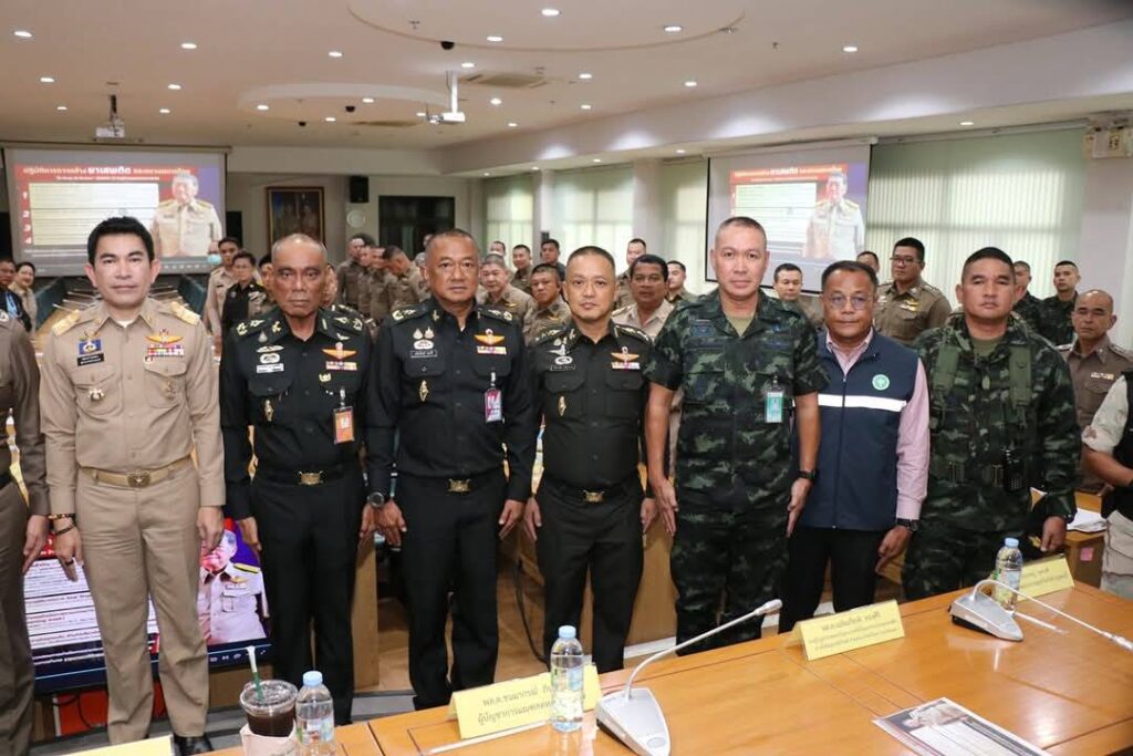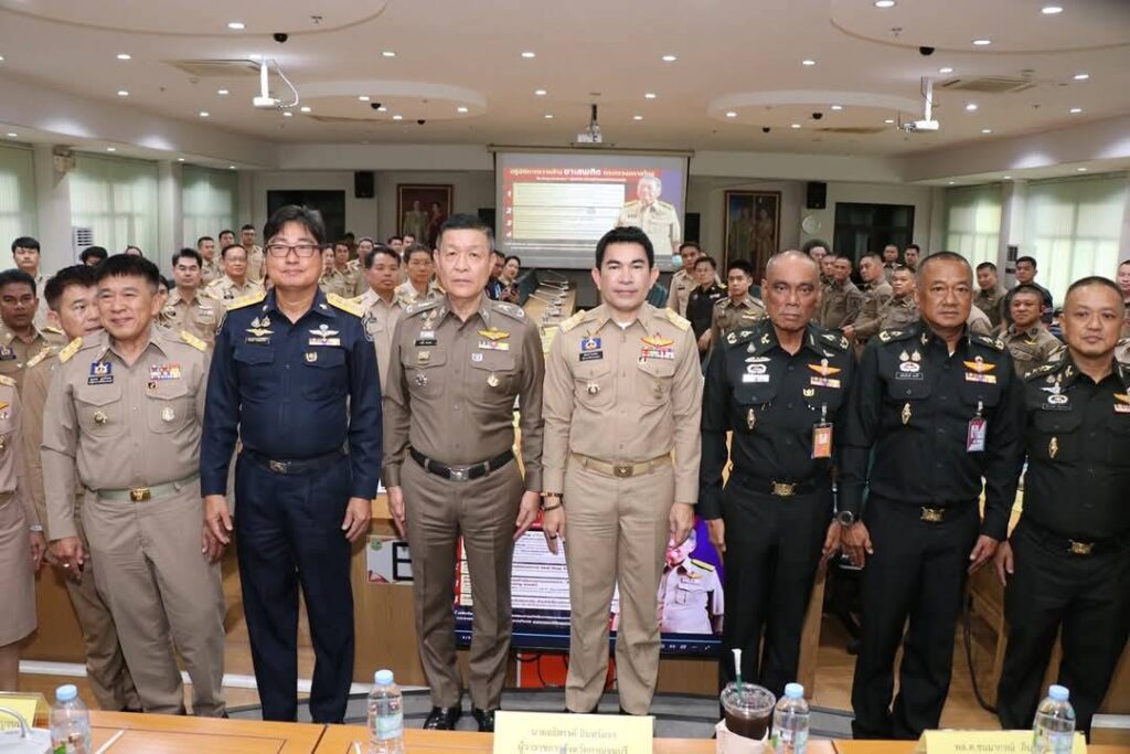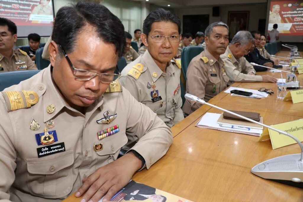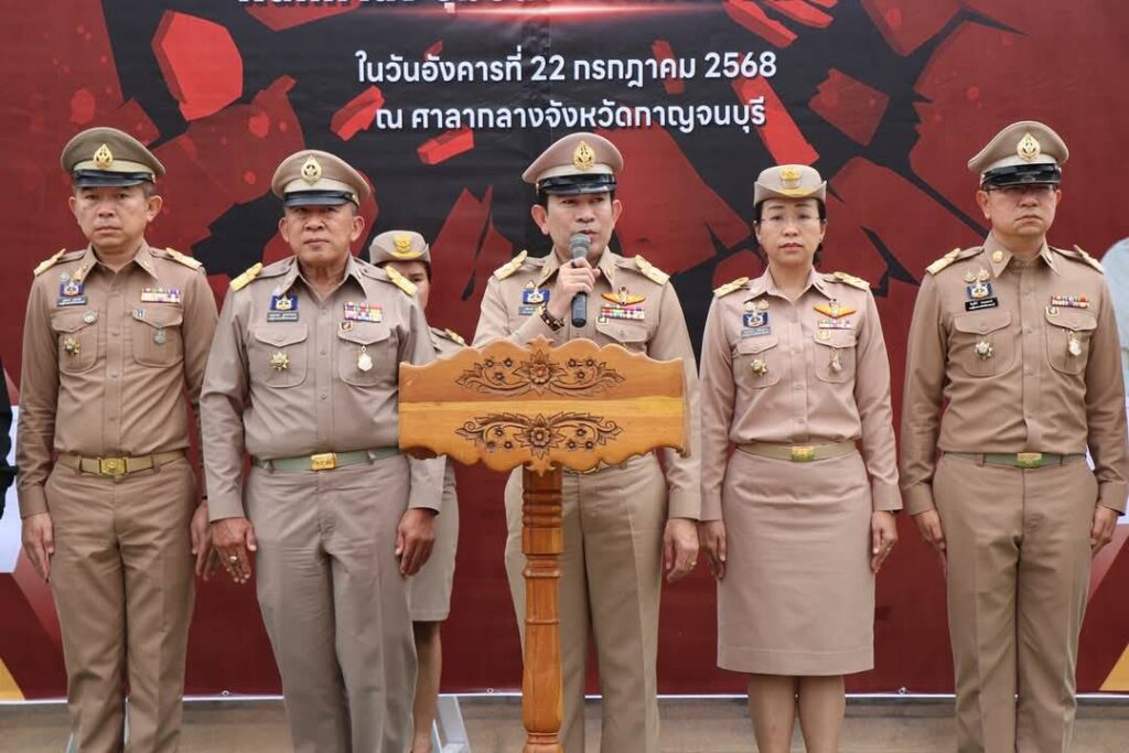วันนี้(22 กรกฎาคม 2568) เวลา 15.00 น. ณ ห้องประชุมแควใหญ่ ชั้น 5 ศาลากลางจังหวัดกาญจนบุรี นายอธิสรรค์ อินทร์ตรา ผู้ว่าราชการจังหวัดกาญจนบุรี ในฐานะผู้อำนวยการศูนย์อำนวยการป้องกันและปราบปรามยาเสพติดจังหวัดกาญจนบุรี เป็นประธานในพิธีมอบนโยบายในการป้องกัน ปราบปราม และแก้ไขปัญหายาเสพติด พร้อมด้วย พลตำรวจตรี พรชัย ชลอเดช ผู้บังคับการตำรวจภูธรจังหวัดกาญจนบุรี พลตรี ชนมากรณ์ ภิบาลชนม์ ผู้บัญชาการมณฑลทหารบกที่ 17 พลตรี เฉลิมเกียรติ ทองศิริ รองผู้บัญชาการ นบ.ยส.17 นายอุกฤษฏ์ บุษบงค์ รองนายแพทย์สาธารณสุขจังหวัดกาญจนบุรี นายสำรวย วรเตชะคงคา ผู้เชี่ยวชาญด้านการป้องกันและปราบปรามยาเสพติดภาค 7 คณะรองผู้ว่าราชการจังหวัดกาญจนบุรี ร่วมมอบนโยบายให้แก่ทุกภาคส่วนที่เกี่ยวข้องฯ โดยมี หัวหน้าส่วนราชการ ข้าราชการ อัยการ ทหาร ตำรวจ นายอำเภอทั้ง 13 อำเภอ ตลอดจนเจ้าหน้าที่ที่เกี่ยวข้องในจังหวัดกาญจนบุรี เข้าร่วมรับมอบนโยบายฯ
