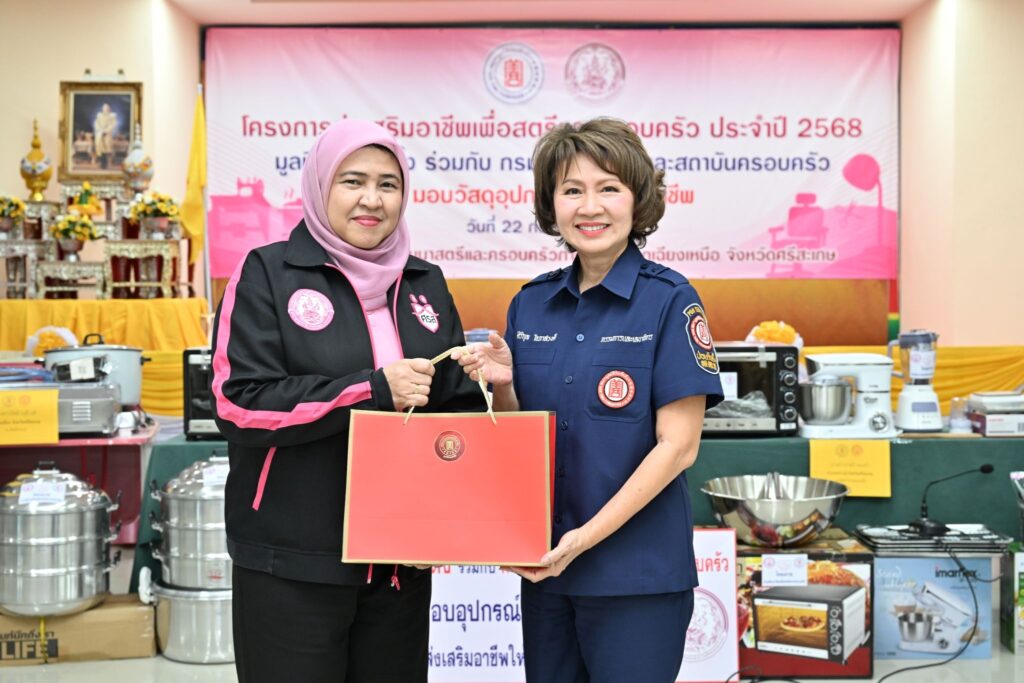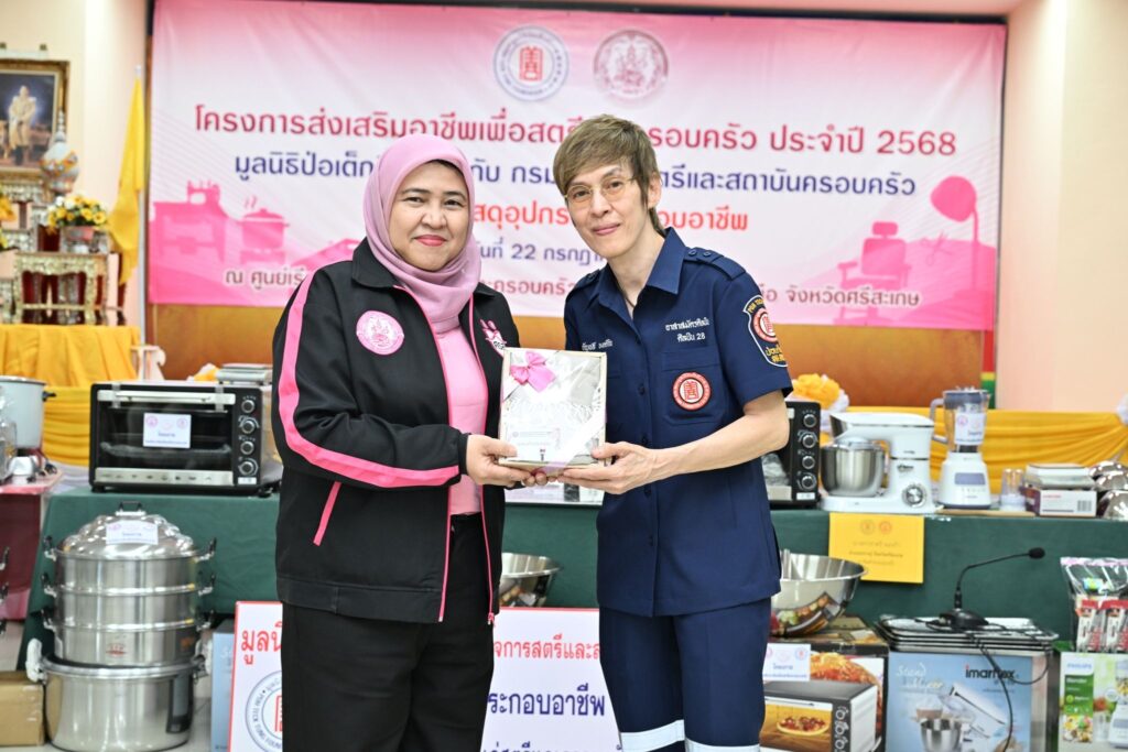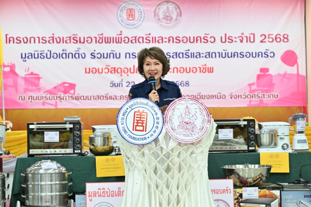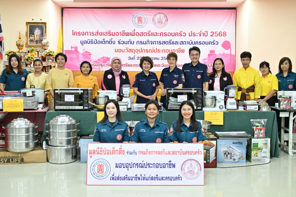 ระหว่างวันที่ 21-23 กรกฎาคม พ.ศ. 2568 มูลนิธิป่อเต็กตึ๊ง นำโดย นางศิริกุล โอภาสวงศ์ กรรมการและเลขาธิการ พร้อมด้วย นายณัฐพร จาตุศรีพิทักษ์ ผู้ช่วยกรรมการ นางศิริพร กระจ่างหล้า ผู้จัดการฝ่ายสังคมสงเคราะห์ นางสาวดวงชุตา ติยะพจนพรกุล ผู้ช่วยผู้จัดการฝ่ายสังคมสงเคราะห์ นางสาวศุภรัตน์ สมบัติเจริญไทย หัวหน้าแผนกส่งเสริมการศึกษาและอาชีพ และนางสาวเนาวรัตน์ วรรณศิริ หัวหน้าแผนกหน่วยแพทย์สงเคราะห์ชุมชน นำทีมลงพื้นที่จังหวัดศรีสะเกษอีกครั้ง โดยมอบวัสดุอุปกรณ์ประกอบอาชีพ แก่ สตรี บุรุษ พ่อเลี้ยงเดี่ยว หรือผู้ที่มีความหลากหลายทางเพศ ที่มีความรู้และความสามารถ ฐานะยากจน ขาดแคลนวัสดุอุปกรณ์ในการประกอบอาชีพ จำนวน 35 ราย คิดเป็นมูลค่าทั้งสิ้น 692,500 บาท เพื่อให้สามารถประกอบอาชีพเลี้ยงตนเองและครอบครัว ลดปัญหาความเหลื่อมล้ำในสังคม สร้างความสุขสู่ชุมชน สังคม และประเทศชาติอย่างยั่งยืน รวมทั้ง มอบรถเข็นวีลแชร์แก่ผู้พิการ จำนวน 10 ราย และมอบรถจักรยานแก่โรงเรียนชนบทที่ขาดแคลนพร้อมกระบอกน้ำขนาด 1 ลิตร จำนวน 2 โรงเรียน รวม 20 คัน เพื่อให้นักเรียนที่ประสบปัญหาในการเดินทางได้ยืมเรียน รวมถึงเป็นการแบ่งเบาภาระค่าพาหนะแก่ผู้ปกครองได้อีกทางหนึ่ง อีกทั้งยังเสริมสร้างให้นักเรียนได้ออกกำลังกาย เรียนรู้กฎจราจร เรียนรู้การแบ่งปัน และดูแลรักษาสาธารณสมบัติร่วมกัน รวมมูลค่าการดำเนินการช่วยเหลือชาวศรีสะเกษในครั้งนี้ทั้งสิ้น 743,052 บาท (เจ็ดแสนสี่หมื่นสามพันห้าสิบสองบาทถ้วน) นอกจากนี้ มูลนิธิฯ ยังจัดหน่วยแพทย์สงเคราะห์ชุมชน นำทีมแพทย์อาสาฯ เจ้าหน้าที่หน่วยแพทย์ ทีมบรรเทาสาธารณภัย (กู้ชีพ) และอาสาสมัครออกหน่วยให้บริการประชาชนในพื้นที่ฟรี ประกอบด้วย บริการตรวจรักษาโรคทั่วไป จ่ายยา ทันตกรรม คัดกรองเบาหวาน กิจกรรมนันทนาการ ตรวจวัดสายตาพร้อมแจกแว่น บริการตัดผม ฯลฯ โดยมี นางสุดา สุหลง รองอธิบดีกรมกิจการสตรีและสถาบันครอบครัว พร้อมด้วย นางสาววีรินท์ นิตย์สุวรรณ พัฒนาสังคมและความมั่นคงของมนุษย์ จังหวัดศรีสะเกษ นางสาวศุภวรรณ ขูดแก้ว ผู้อำนวยการกองคุ้มครองและพัฒนาอาชีพ นางสาวจุรีพร ภิบาลจันทร์ ผู้อำนวยการศูนย์เรียนรู้การพัฒนาสตรีและครอบครัวภาคตะวันออกเฉียงเหนือ จังหวัดศรีสะเกษ และนางสาวอัญชลี จงคดีกิจ (ปุ๊-อัญชลี) อาสาสมัครศิลปินมูลนิธิป่อเต็กตึ๊ง ร่วมในพิธี ณ ศูนย์เรียนรู้การพัฒนาสตรีและครอบครัวภาคตะวันออกเฉียงเหนือ จังหวัดศรีสะเกษ