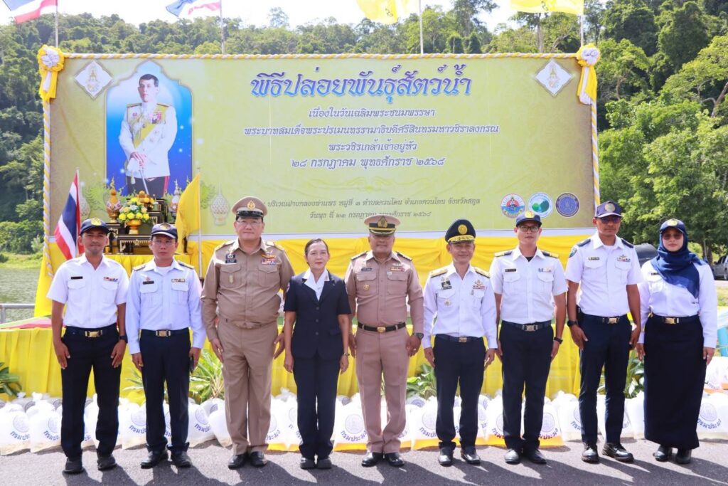 วันนี้ 23 ก.ค. 68 ที่บริเวณฝายคลองท่าแพร หมู่ที่ 3 ตำบลควนโดน อำเภอควนโดน จังหวัดสตูล นายศักระ กปิลกาญจน์ ผู้ว่าราชการจังหวัดสตูล เป็นประธานในพิธีปล่อยพันธุ์สัตว์น้ำเพื่อเฉลิมพระเกียรติและถวายเป็นพระราชกุศล เนื่องในโอกาสวันเฉลิมพระชนมพรรษา พระบาทสมเด็จพระวชิรเกล้าเจ้าอยู่หัว 28 กรกฎาคม 2568 โดยมีทันตแพทย์หญิงสุกีรติ กปิลกาญจน์ นายกเหล่ากาชาดจังหวัดสตูล/ประธานชมรมแม่บ้านมหาดไทยจังหวัดสตูล นายสมยศ จิตเที่ยง นายอำเภอควนโดน นายนิพนธ์ เสนอินทร์ ประมงจังหวัดสตูล พร้อมด้วยหัวหน้าส่วนราชการ ข้าราชการ เจ้าหน้าที่กรมประมง และประชาชนในพื้นที่ ร่วมกิจกรรมโดยพร้อมเพรียงกัน ท่ามกลางบรรยากาศแห่งความจงรักภักดี โดยผู้ร่วมกิจกรรมต่างสวมใส่เสื้อหรือชุดโทนสีเหลือง ในโอกาสนี้ ผู้ว่าราชการจังหวัดสตูลได้ประกอบพิธีเปิดกรวยถวายราชสักการะเบื้องหน้าพระบรมฉายาลักษณ์พระบาทสมเด็จพระเจ้าอยู่หัว และกล่าวบังคมทูลถวายพระพรชัยมงคล ความว่า “ข้าพระพุทธเจ้า พร้อมด้วยชาวจังหวัดสตูล ต่างปลื้มปีติและสำนึกในพระมหากรุณาธิคุณ ที่พระบาทสมเด็จพระเจ้าอยู่หัว ทรงงานด้านการประมง และทรงมีพระเมตตาเสด็จพระราชดำเนินทรงงานที่เกี่ยวข้องกับการประมงทั่วประเทศ เพื่อส่งเสริมการพัฒนาแหล่งน้ำและทรัพยากรสัตว์น้ำของชาติ จังหวัดสตูลจึงจัดโครงการปล่อยพันธุ์สัตว์น้ำในวันนี้ เพื่อถวายเป็นพระราชกุศล และร่วมอนุรักษ์ทรัพยากรธรรมชาติให้คงความอุดมสมบูรณ์”