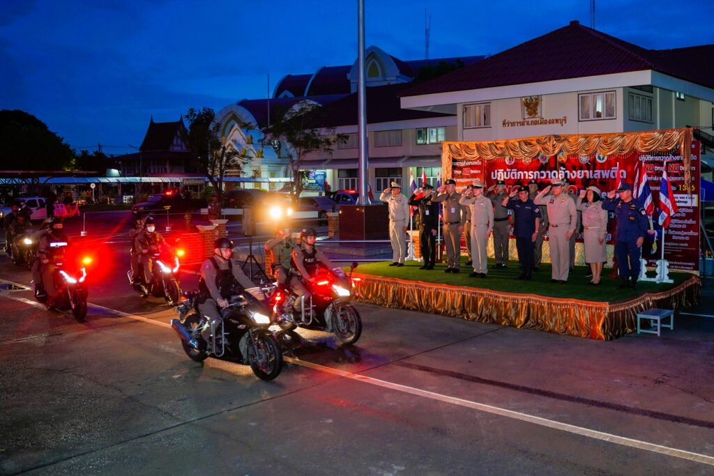 วันที่ 24 กรกฎาคม พ.ศ.2568 เวลา 05.30 น. ณ ลานเสาธงหน้าที่ว่าการอำเภอเมืองลพบุรี จังหวัดลพบุรี นายอำพล อังคภากรณ์กุล ผู้ว่าราชการจังหวัดลพบุรี เป็นประธานพิธีปล่อยแถว กิจกรรม “Kick off ปฏิบัติการกวาดล้างยาเสพติด NO Drugs NO Dealers ผนึกกำลัง ชุมชนปลอดยาเสพติด” โดยมี นายทิพเมษฐ์ สังขวรรณะ ผู้อำนวยการ สำนักงาน ปปส.ภาค 1 พลตำรวจตรีอภิรักษ์ เวชกาญจนา ผู้บังคับการตำรวจภูธรจังหวัดลพบุรี นายปรัชญา เปปะตัง รองผู้ว่าราชการจังหวัดลพบุรี นายรัฐพล ธุระพันธ์ นายอำเภอเมืองลพบุรี พร้อมด้วย รองผู้บังคับการ ตำรวจภูธรจังหวัดลพบุรี ผู้นำท้องที่ ผู้นำท้องถิ่น ส่วนราชการ ชรบ.และหน่วยงานที่เกี่ยวข้องเข้าร่วมพิธี ประมาณ 450 คน