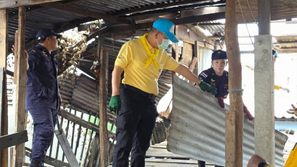 นายรัฐพล ธุระพันธ์ นายอำเภอเมืองลพบุรี จังหวัดลพบุรี ผู้อำนวยการศูนย์อำนวยการจิตอาสาพระราชทานอำเภอเมืองลพบุรี จังหวัดลพบุรี นำเจ้าหน้าที่เทศบาลตำบลเขาพระงาม กำนัน-ผู้ใหญ่บ้าน ตำบลเขาพระงาม กองร้อย ชรบ.ตำบลเขาพระงาม และประชาชนจิตอาสา ร่วมกันรื้อถอนบ้านของนายสนั่น บุญฤทธิ์ หมู่ที่ 1 ต.เขาพระงาม อำเภอเมืองลพบุรี จังหวัดลพบุรี เพื่อเตรียมความพร้อมในการสร้างบ้าน ต่อไป