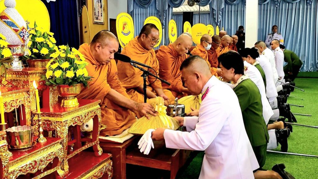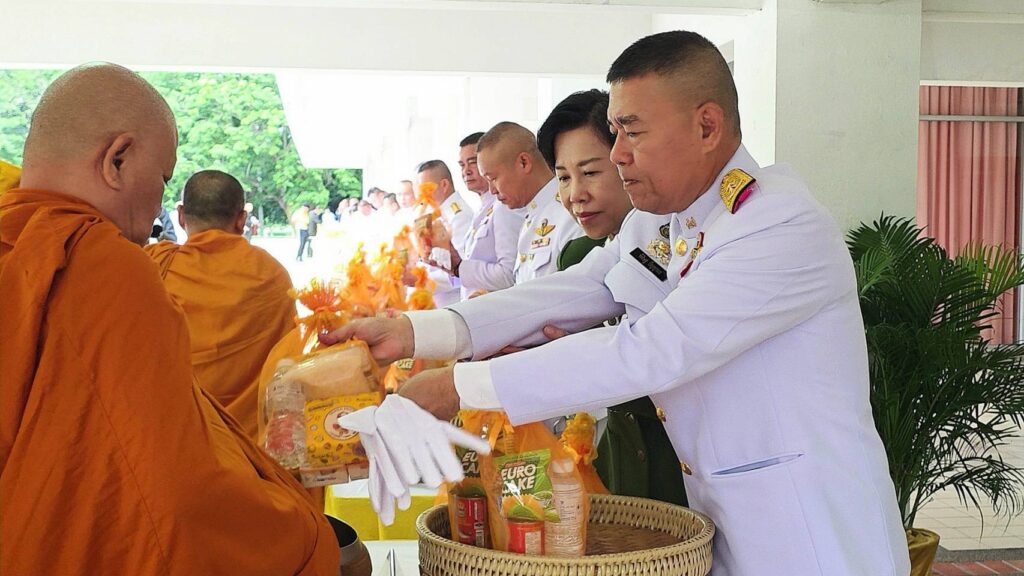 ที่ สโมสรนายทหาร ศูนย์การทหารปืนใหญ่ ค่ายภูมิพลฯ จังหวัดลพบุรี พลตรี พิศิษฐ ปัญญานะ ผู้บัญชาการศูนย์การทหารปืนใหญ่ เป็นประธาน นำข้าราชการกำลังพล ตลอดจน สมาชิกสมาคมแม่บ้านทหารบก สาขาศูนย์การทหารปืนใหญ่ พร้อมด้วยคณะ ครู นักเรียน โรงเรียนกองทัพบกอุปถัมภ์สองเหล่าสร้าง ร่วมประกอบพิธีทำบุญตักบาตรข้าวสารอาหารแห้งแด่พระสงฆ์ จำนวน 10 รูป พร้อมทั้งร่วมประกอบพิธีสวดเจริญพระพุทธมนต์ เพื่อเฉลิมพระเกียรติ และถวายเป็นพระราชกุศลฯ แด่ พระบาทสมเด็จพระเจ้าอยู่หัว เนื่องในโอกาสมหามงคลเฉลิมพระชนมพรรษา 73 พรรษา 28 กรกฎาคม 2568