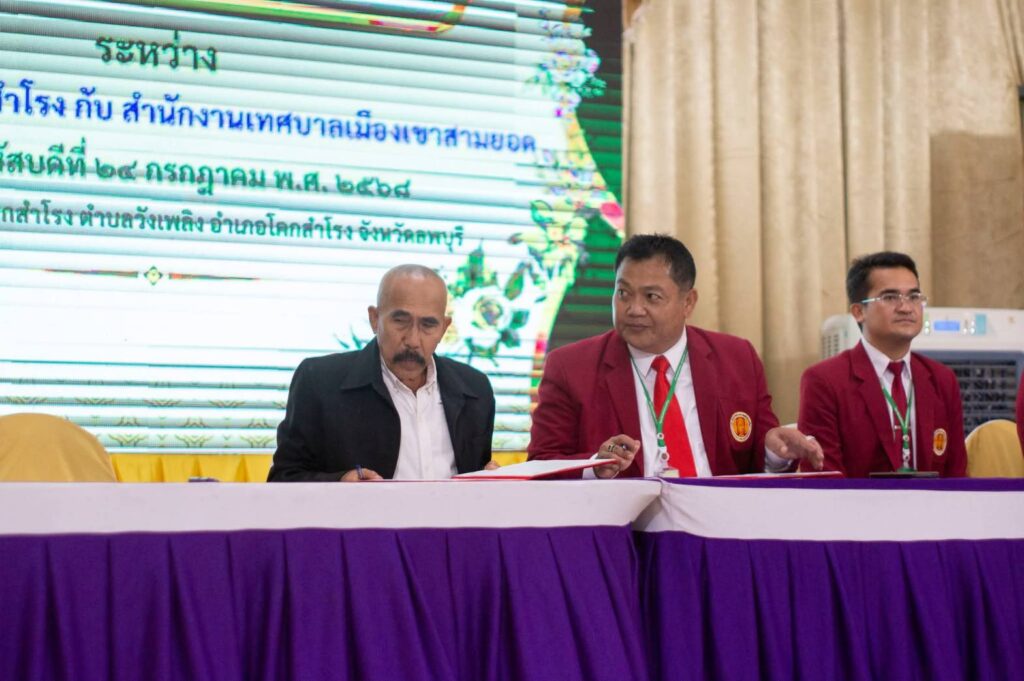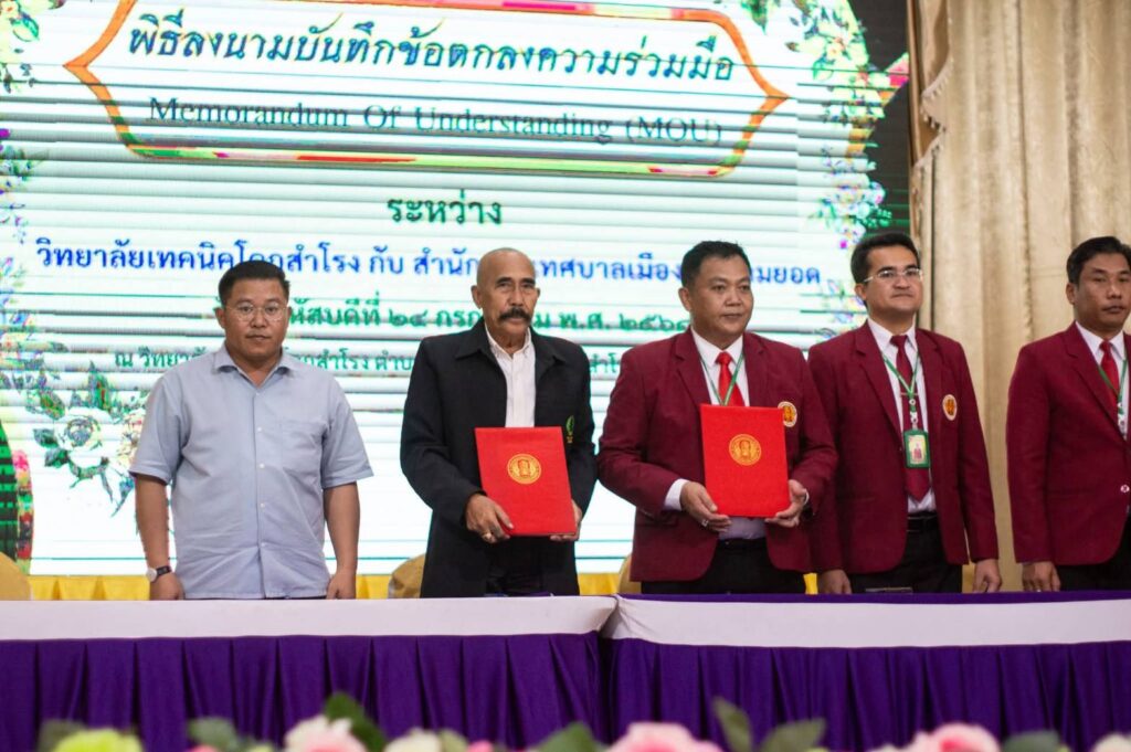 มอบหมาย นายสุรพล แย้มชม เลขานุการนายกเทศมนตรีเมืองเขาสามยอด และนายภูมรินทร์ กลิ่นขจร ที่ปรึกษานายกเทศมนตรีเมืองเขาสามยอด ร่วมพิธีลงนามบันทึกข้อตกลงความร่วมมือระหว่างวิทยาลัยเทคนิคโคกสำโรงกับสถานประกอบการเเละหน่วยงานราชการ เพื่อเสริมสร้างความเข้มเเข็งในการดำเนินงาน เเละผลสัมฤทธิ์ที่ดีทางการศึกษาในการจัดการเรียนการสอนร่วมกัน ณ หอประชุมวิทยาลัยเทคนิคโคกสำโรง อ.โคกสำโรง จ.ลพบุรี