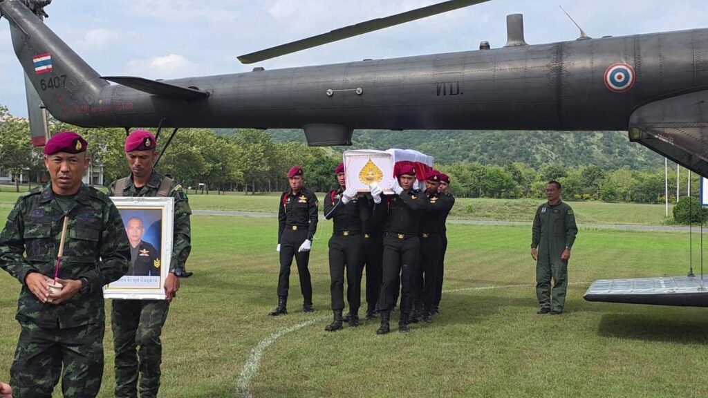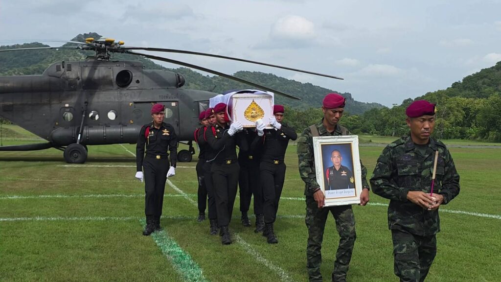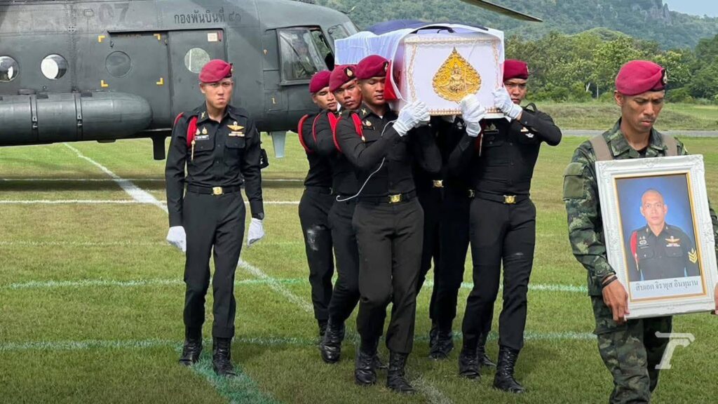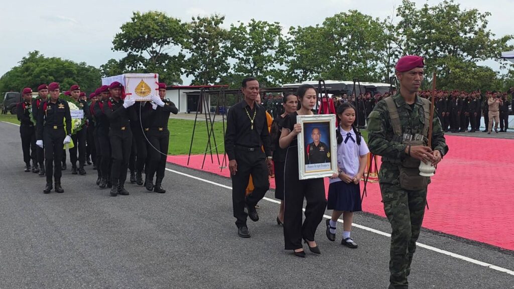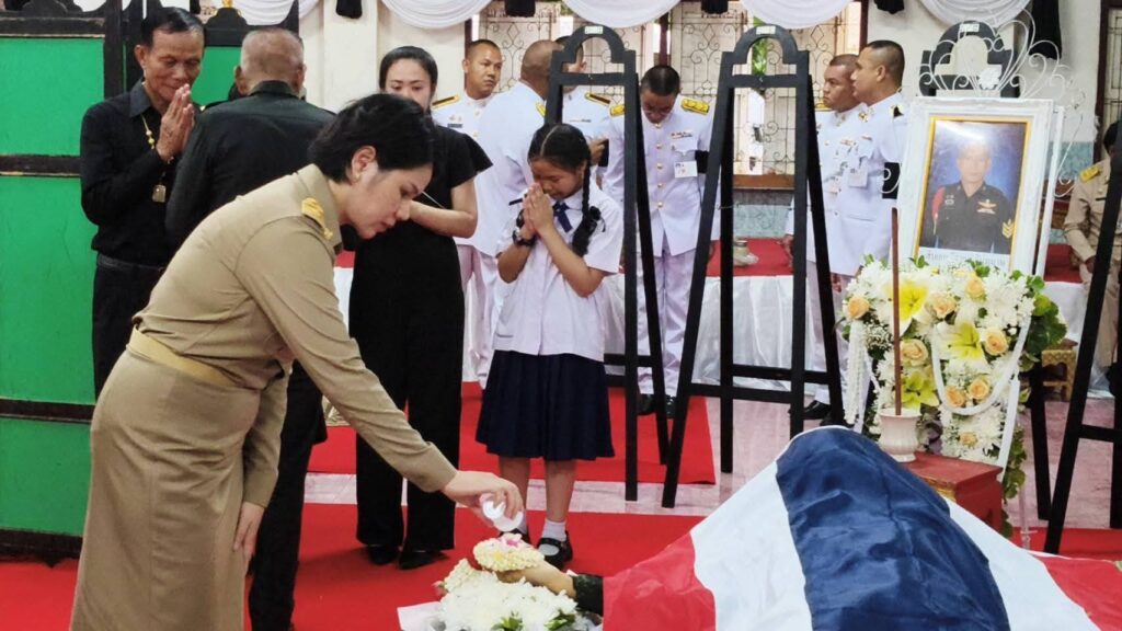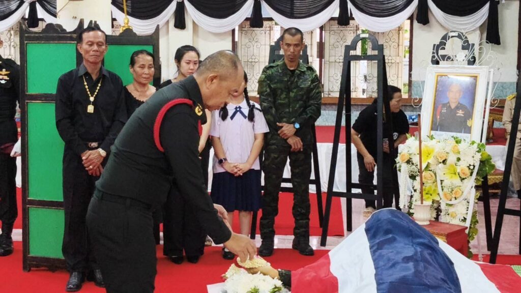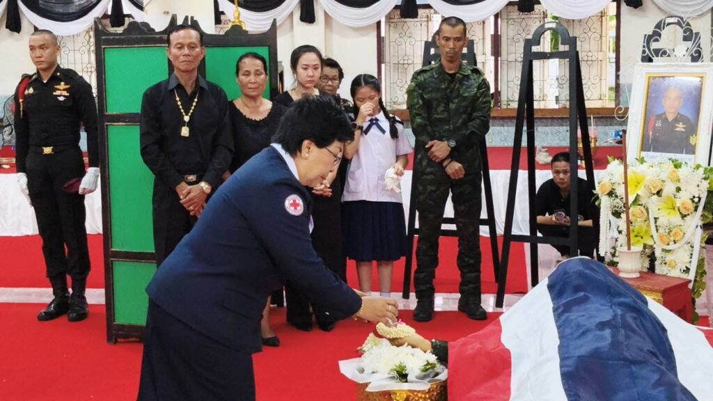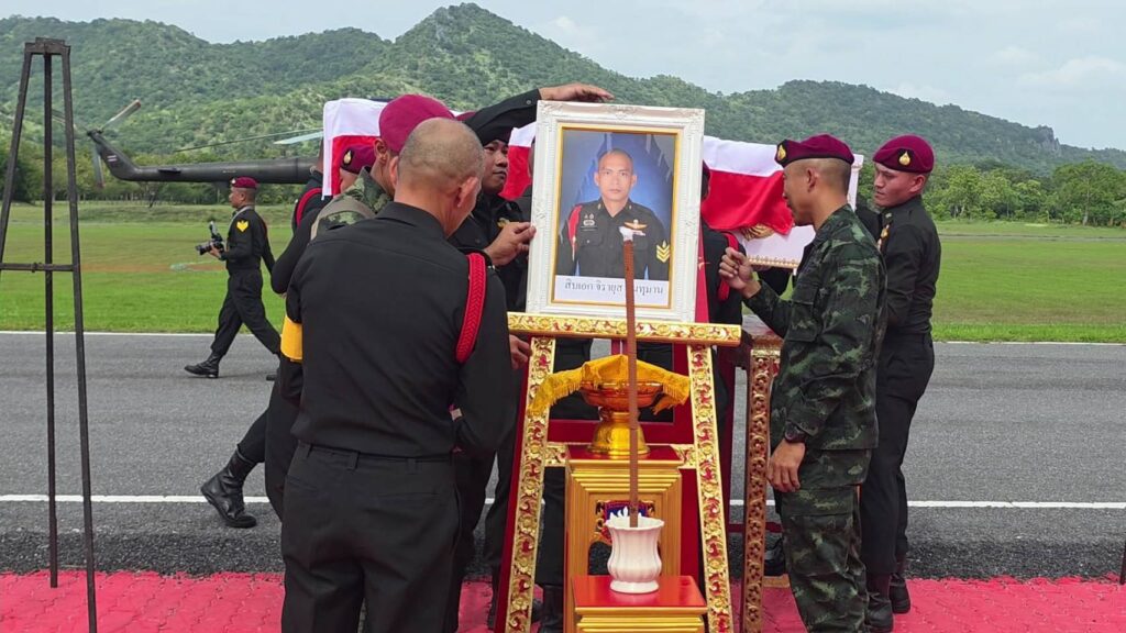 วันที่ 26 กรกฎาคม 2568 เวลา 17.00 น. ณ วัดโพธิ์ข้าวผอก ตำบลบางมัญ อำเภอเมือง จังหวัดสิงห์บุรี พระบาทสมเด็จพระเจ้าอยู่หัวทรงพระกรุณาโปรดเกล้าฯ พระราชทานน้ำหลวงอาบศพแก่ ส.อ.จิรายุส อินทุมาน สังกัด กองพันจู่โจม หน่วยบัญชาการสงครามพิเศษ โดยมีนายสุเมธ ธีรนิติ ผู้ว่าราชการจังหวัดสิงห์บุรี เป็นประธานในพิธีอัญเชิญน้ำหลวงอาบศพแก่วีรชนทหารกล้า และทรงพระกรุณาโปรดเกล้าฯ ให้ นายสุเมธ ธีรนิติ ผู้ว่าราชการจังหวัดสิงห์บุรี เชิญพวงมาลาหลวง พวงมาลาสมเด็จพระนางเจ้าฯ พระบรมราชินี , พวงมาลาสมเด็จพระนางเจ้าสิริกิติ์ พระบรมราชินีนาถ พระบรมราชชนนีพันปีหลวง และพวงมาลาพระบรมวงศานุวงศ์ วางหน้าหีบศพของวีรชนทหารกล้า และทรงพระกรุณาโปรดเกล้าฯ พระราชทานรับศพไว้ในพระบรมราชานุเคราะห์ ยังความปลาบปลื้มในพระมหากรุณาธิคุณแก่ครอบครัวอินทุมาน เป็นล้นพ้น