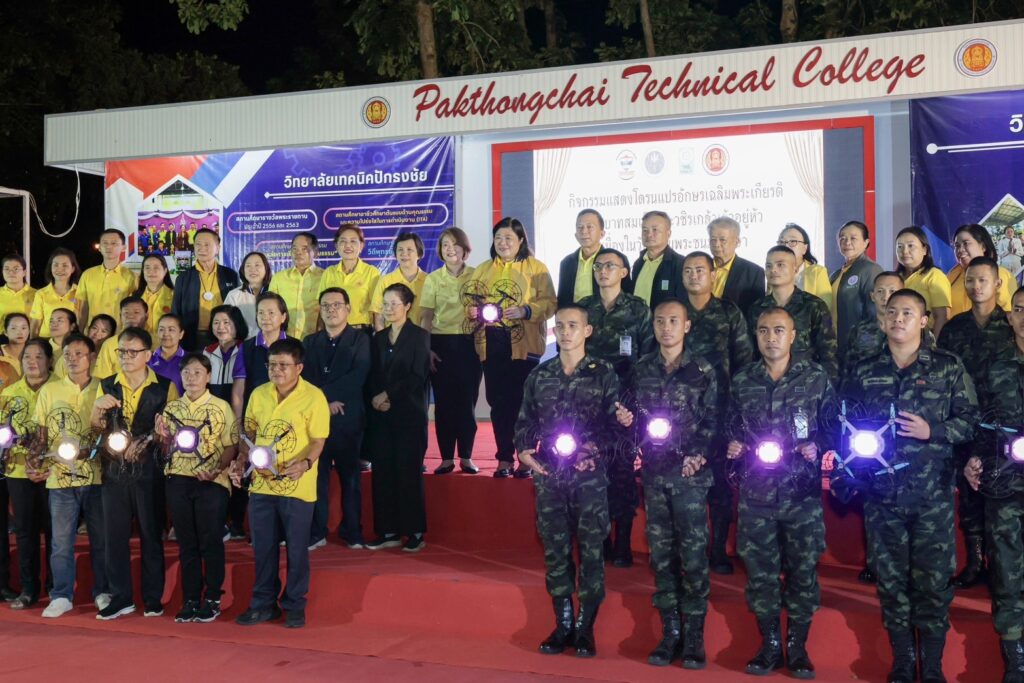 เมื่อวันที่ 27 กรกฎาคม 2568 สำนักงานการวิจัยแห่งชาติ (วช.) กระทรวงการอุดมศึกษา วิทยาศาสตร์ วิจัยและนวัตกรรม (อว.) ร่วมกับ กองทัพภาคที่ 2 และสมาคมกีฬาเครื่องบินจำลองและวิทยุบังคับ จัดกิจกรรมเฉลิมพระเกียรติพระบาทสมเด็จพระเจ้าอยู่หัว เนื่องในโอกาสวันเฉลิมพระชนมพรรษา 28 กรกฎาคม 2568 โดยมี ดร.วิภารัตน์ ดีอ่อง ผู้อำนวยการสำนักงานการวิจัยแห่งชาติ (ผอ.วช.) เป็นประธานในพิธี พร้อมนี้ อ.ดร.มัลลิกา สังข์สนิท รองอธิการบดีมหาวิทยาลัยเทคโนโลยีสุรนารี อว.ส่วนหน้าจังหวัดนครราชสีมา กล่าวสนับสนุน, นายกฤษณธร เลิศสำโรง นายอำเภอปักธงชัย กล่าวขอบคุณ,ดร.สิริรัชนา เนาว์โสภา ผู้อำนวยการวิทยาลัยเทคนิคปักธงชัย กล่าวต้อนรับ ในโอกาสเดียวกัน คณาจารย์วิทยาลัยเทคนิคปักธงชัย คณะผู้บริหารและผู้ทรงคุณวุฒิ (วช.) ผู้นำนำชุมชน เข้าร่วมกิจกรรม ณ วิทยาลัยเทคนิคปักธงชัย จ.นครราชสีมา