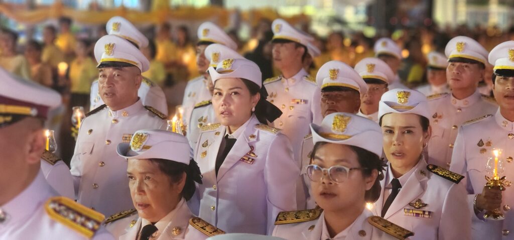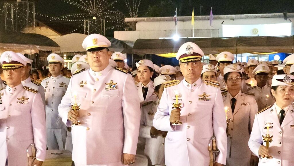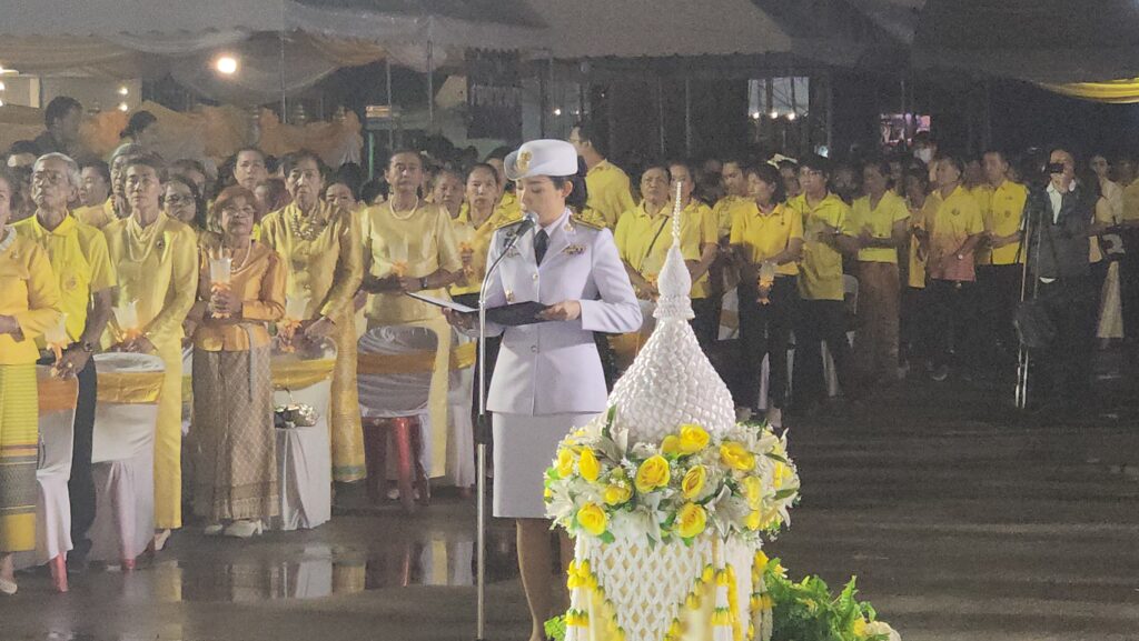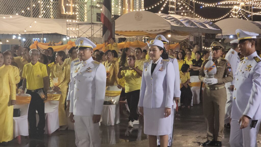 เมื่อเวลา 19.00 น. วันที่ 28 กรกฎาคม 2568 ที่ลานอเนกประสงค์หน้าอำเภอคลองหลวง จ.ปทุมธานี น.ส.อภิสรา เกษอินทร์ นายอำเภอคลองหลวง พร้อมด้วย นายยุทธศักดิ์ ชูประเสริฐ นายกเทศมนตรีเมืองคลองหลวง รศ.วิระศักดิ์ ฮาดดา นายกองค์การบริหารส่วนตำบลคลองสาม พ.ต.อ.อธิเมศร์ ไชยศรัญวิชญ์ ผู้กำกับการสถานีตำรวจภูธรคลองหลวง นายทองสุก แสนจักร สมาชิกสภา อบจ.เขตเลือกตั้งที่ 3 อ.คลองหลวง นางสาวพรปริญญา ศรีจันทร์ สมาชิกสภา อบจ.เขตเลือกตั้งที่ 5 นายสัญชาติ คุระนันท์ สมาชิกสภา อบจ.เขตเลือกตั้งที่ 7 นำคณะผู้บริหารเทศบาลเมืองคลองหลวง ข้าราชการและประชาชนพร้อมใจใส่เสื้อสีเหลือง ร่วมพิธีถวายราชสดุดี จุดเทียนชัยถวายพระพรชัยมงคล ถวายเครื่องราชสักการะ วางพานพุ่มเงิน พุ่มทอง แด่พระบาทสมเด็จพระเจ้าอยู่หัว เนื่องในโอกาสมหามงคลวันเฉลิมพระชนมพรรษา 28 กรกฎาคม 2568