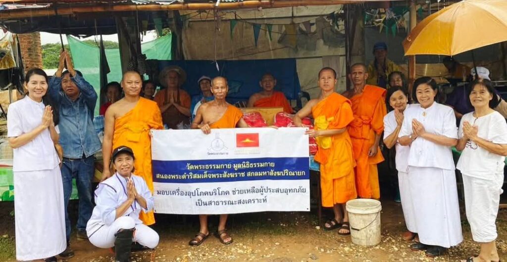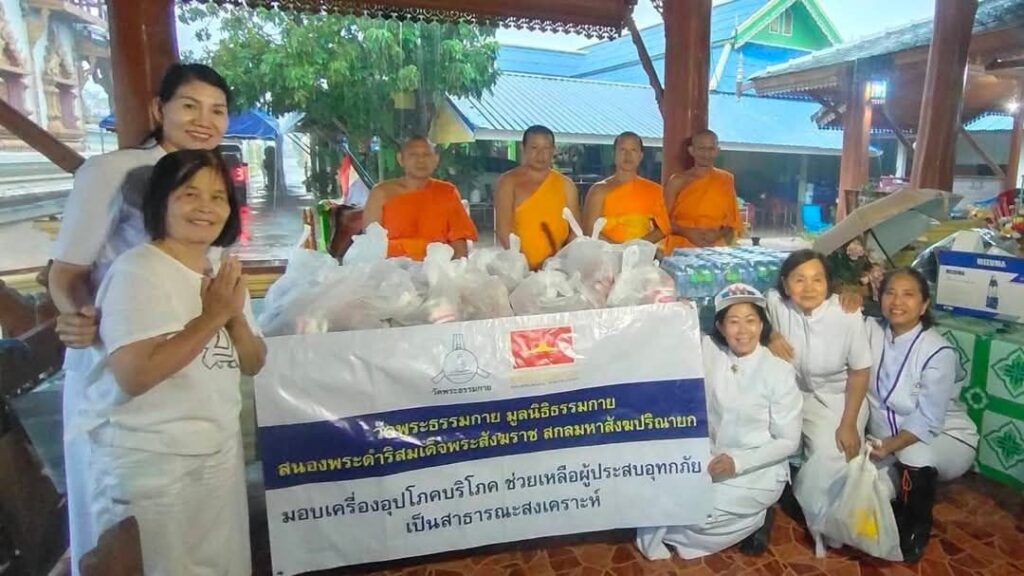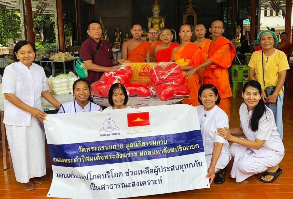 พระครูปลัดรัตนวีรวัฒน์ (รังสฤษดิ์ อิทฺธิจินฺตโก) เจ้าอาวาสวัดพระธรรมกาย มอบหมายให้ฝ่ายสาธารณะสงเคราะห์ พระมหาพันภูมิ ญาณธมฺโม ประธานส่งเสริมศีลธรรมจังหวัดน่าน และอาสาสมัครมูลนิธิธรรมกาย เร่งลงพื้นที่ให้ความช่วยเหลือคณะสงฆ์และประชาชนผู้ประสบอุทกภัยโดยได้มอบถุงยังชีพกว่า 800 ชุด ในพื้นที่อำเภอท่าวังผาและอำเภอเมืองน่าน ซึ่งเป็นพื้นที่น้ำท่วมสูงเป็นเวลานาน มีคณะสงฆ์และประชาชนผู้อยู่อาศัยติดค้างในชุมชนเป็นจำนวนมาก โดยได้นำถวายแด่คณะสงฆ์และมอบให้ผู้แทนชุมชนในอำเภอท่าวังผา 3 ชุมชน ได้แก่ชุมชนวัดหนองบัว ชุมชนวัดดอนสบสาย ชุมชนวัดสุทธารามจำนวน 300 ชุด ในอำเภอเมืองน่าน 15 ชุมชน อาทิ ชุมชนวัดผาขวาง ชุมชนวัดพระธาตุช้างค้ำ ชุมชนวัดดอนมูล จำนวน 500 ชุด นอกจากนี้ยังได้จัดทำอาหารปรุงสุกเพื่อนำถวายแก่พระภิกษุสามเณรในพื้นที่อำเภอเมืองอีกด้วย