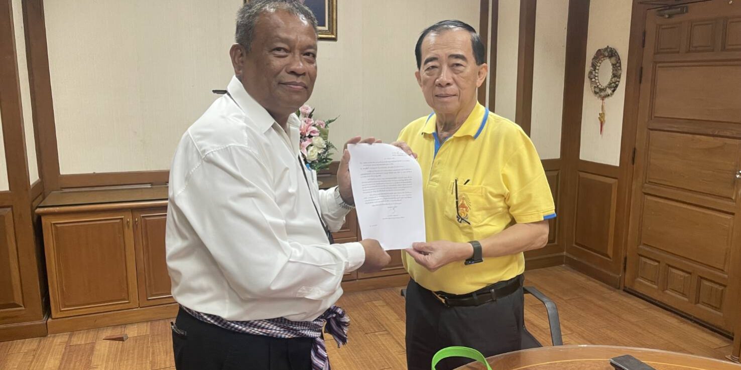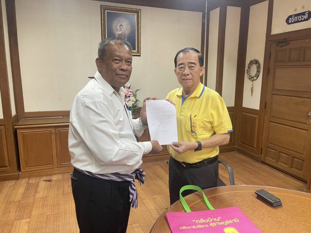 นายวัชระ เพชรทอง อดีตสส.พรรคประชาธิปัตย์ยื่นหนังสือถึงผศ.วุฒิศักดิ์ ลาภเจริญรัตน์ รักษาการอธิการบดีมหาวิทยาลัยรามคำแหงและนายวีระพล ตั้งสุวรรณ นายกสภามหาวิทยาลัยรามคำแหงที่สำนักงานตึกอธิการบดี