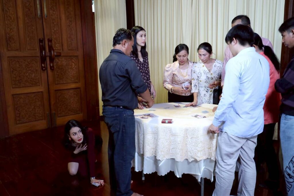 ผู้กำกับฯ เอ๋-กษมา ขอซักซ้อมฉากแรกด้วย “บ่อนการพนัน” ของ เสี่ยอำนาจ ซึ่งมีนักพนันมาเล่นมากมาย รวมถึง “นงราม” (ษา-วรรณษา ทองวิเศษ) และ “ยิหวา” รวมอยู่ด้วย