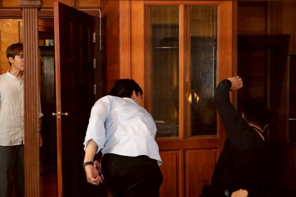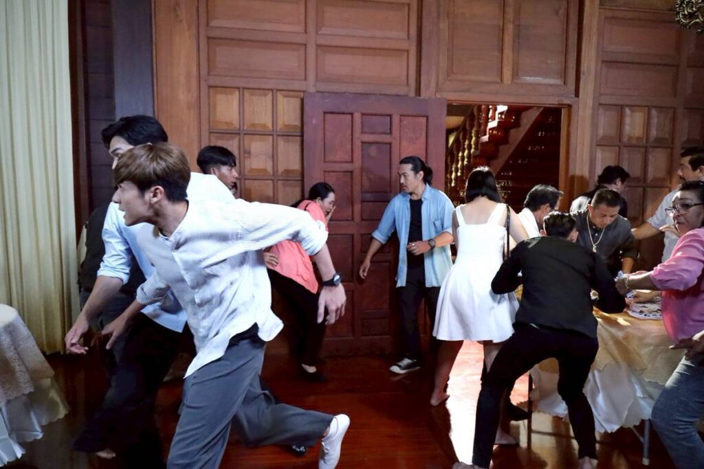 เมื่อได้ภาพสมใจ ผู้กำกับฯ ก็ให้คิวสองหนุ่มที่กำลังวิ่งหา “อรชา” ภายในบ้าน แล้วก็ได้ยินเสียง “อรชา” สองหนุ่ม “กบิล” และ “ตรัย” จึงรีบเข้าไปช่วย อยากบอกว่าเบื้องหลังฉากนี้กว่าจะได้ภาพออกมาอย่างที่เห็นก็ทำเอาพระเอก “ชอน” ต้องปล่อยหมัดใส่เสี่ยอยู่หลายเทค ส่วนนางเอก “มะเหมี่ยว” ที่สู้ขาดใจสภาพก็สะบักสะบอมจริง และเมื่อหลุดออกมาจากห้องทั้งสามคนก็ต้องปะทะกับลูกน้องเสี่ยที่มีปืนอยู่ในมือ พวกเขาจะหนีรอดได้อย่างไร!!!