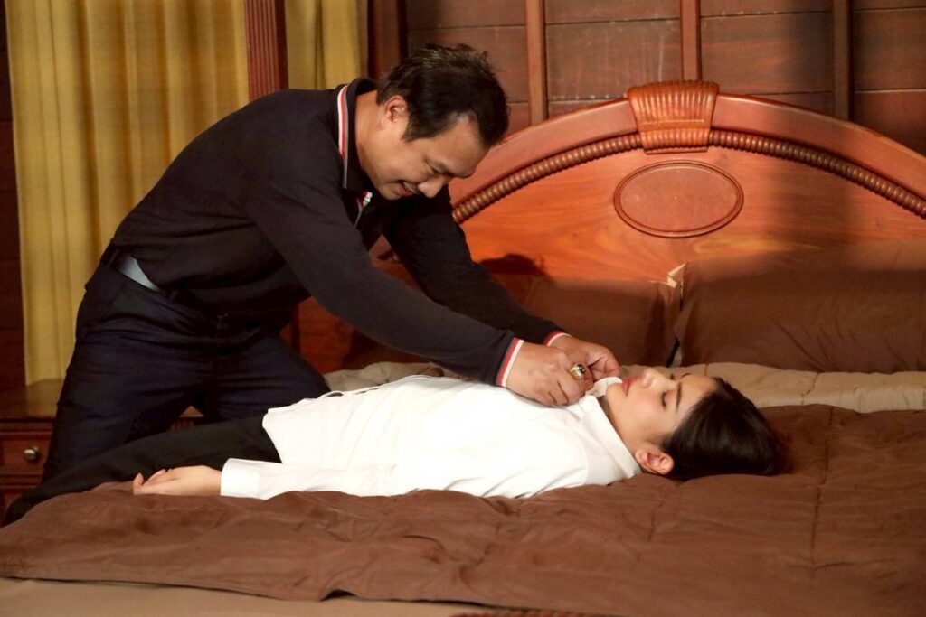 แล้วก็มาถ่ายอีกฉาก “อรชา” พยายามหนี เสี่ยอำนาจ มิให้ทำมิดีมิร้ายกับตน!! ฉากนี้ถ่ายทำในห้องนอน ซึ่งเป็นฉากที่ “อรชา” ถูกโปะยาสลบ และนอนอยู่บนเตียง ก่อนถ่ายทำผู้กำกับขอให้นักแสดงซ้อมคิวไปพร้อมกล้อง หลังจากนั้นก็ถ่ายทำจริง ในขณะที่ เสี่ยอำนาจ กำลังจะทำมิดีมิร้าย “อรชา” ก็รู้สึกตัว คว้าแจกันตีหัวเสี่ย แล้วพยายามจะหนี ฉากนี้ทั้ง สาว “มะเหมี่ยว” และนักแสดงสมทบต่างยื้อยุดฉุดกระชากกันอยู่หลายที เพื่อให้เห็นว่า “อรชา” นั้นสู้ขาดใจ!!! ก่อนจะโดนชกท้องแน่นิ่งไป ภาพเสี่ยค่อยๆปลดกระดุมเสื้อ “อรชา”