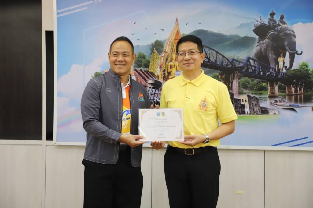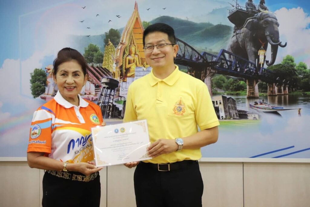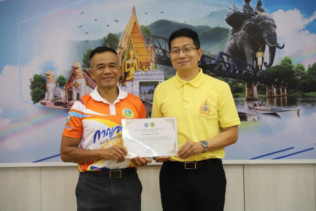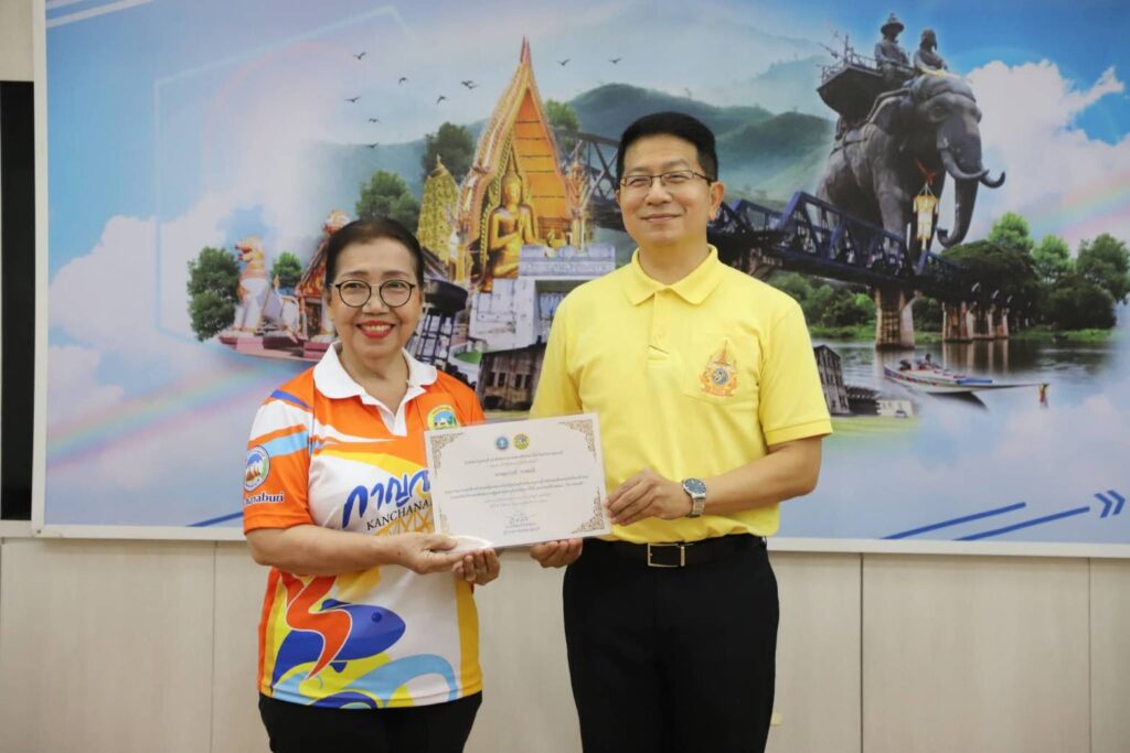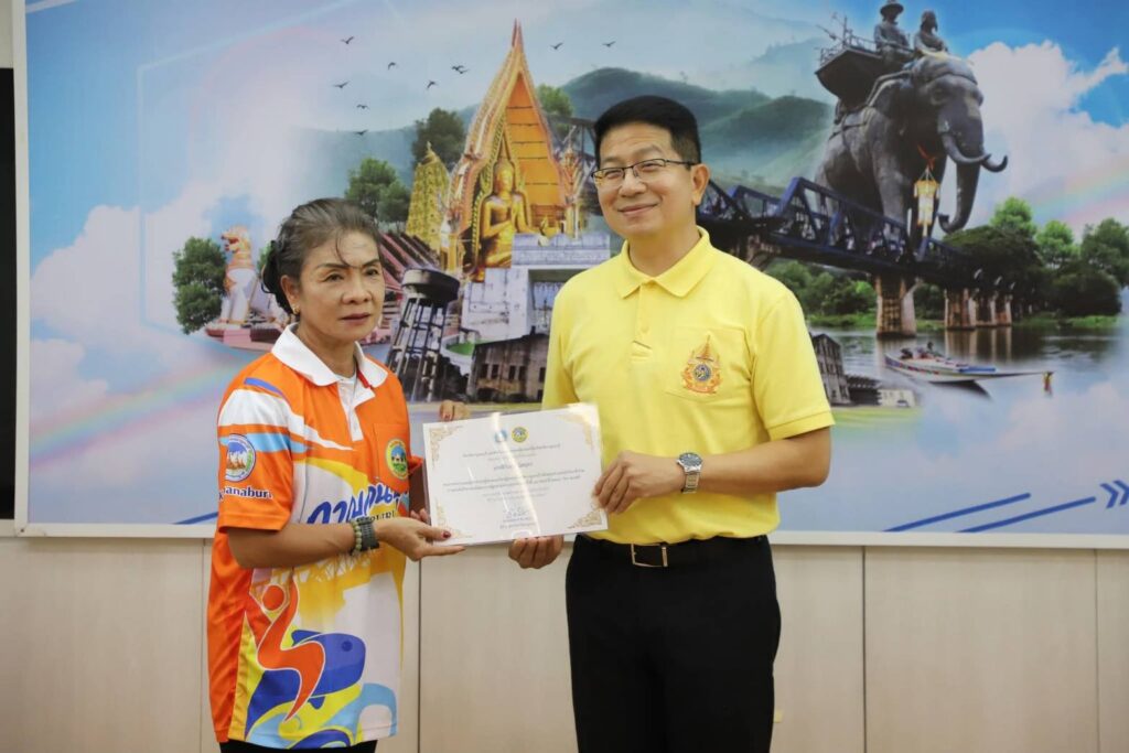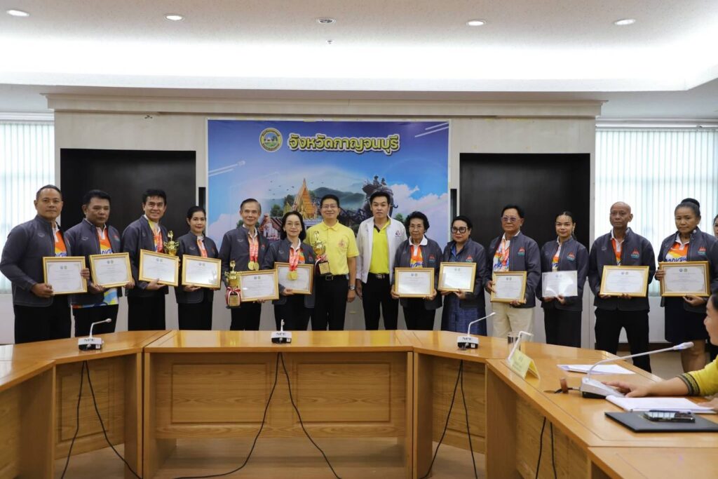 วันนี้ (29 กรกฎาคม 2568) ณ ห้องประชุมแควน้อย ชั้น 3 ศาลากลางจังหวัดกาญจนบุรี นายอธิสรรค์ อินทร์ตรา ผู้ว่าราชการจังหวัดกาญจนบุรี มอบหมายให้ นายสิทธิวีร์ วรรณพฤกษ์ รองผู้ว่าราชการจังหวัดกาญจนบุรี เป็นประธานในพิธีมอบเกียรติบัตรให้แก่นักกีฬา และเจ้าหน้าที่ชมรมกีฬาผู้สูงอายุจังหวัดกาญจนบุรี จากการแข่งขันกีฬาและนันทนาการผู้สูงอายุแห่งประเทศไทย ครั้งที่ 17 “โคราชเกมส์” โดยมี นายประสิทธิ์ ปิ่มบุญ ท่องเที่ยวและกีฬาจังหวัดกาญจนบุรี กล่าวรายงานฯ พร้อมด้วย นางกระแสร์ บำจิตต์ ประธานชมรมกีฬาผู้สูงอายุจังหวัดกาญจนบุรี นักกีฬา ผู้ฝึกสอน และเจ้าหน้าที่ท่องเที่ยวและกีฬาจังหวัดกาญจนบุรี เข้าร่วมพิธีฯ