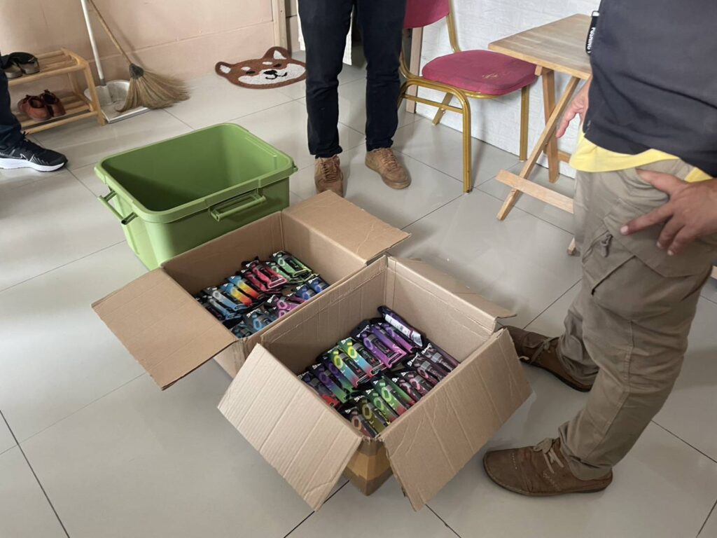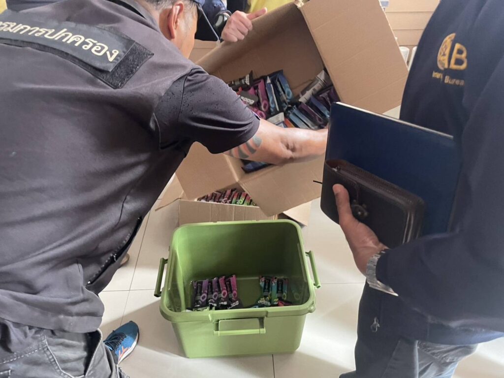 ตรวจของในครั้งนี้ได้จับกุมผู้ต้องหาที่จำหน่ายบุหรี่ไฟฟ้า จำนวน 1 ราย