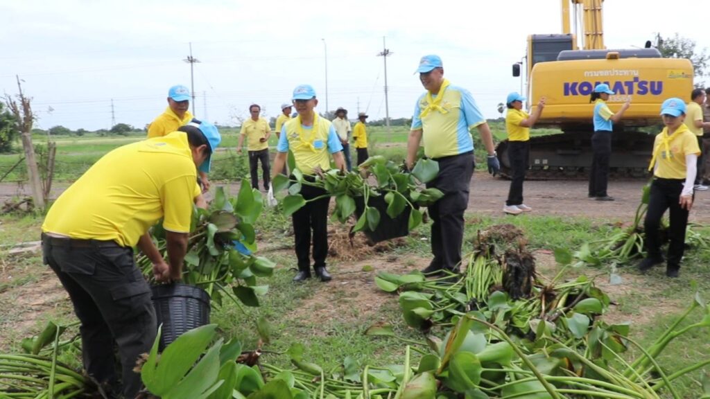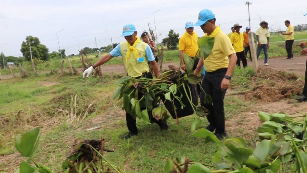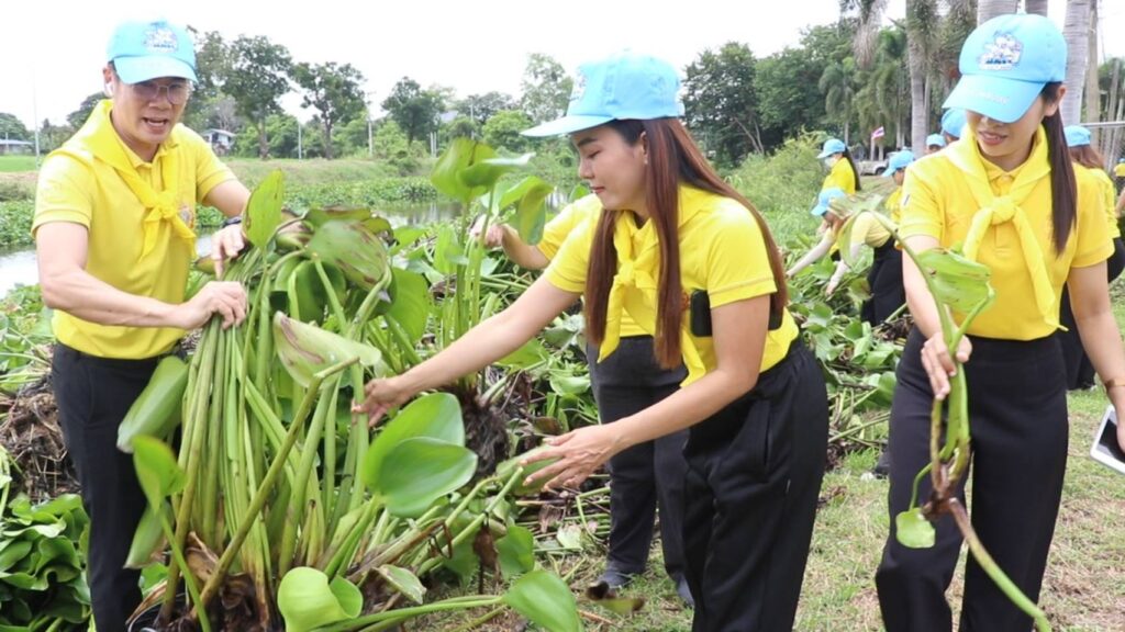 วันจันทร์ที่ 28 กรกฏาคม 2568 เวลา 10.30 น.นายสุเมธ ธีรนิติ ผู้ว่าราชการจังหวัดสิงห์บุรี พร้อมนายวราดิศร อ่อนนุช นางสาววีรวรรณ จันทนเสวี รองผู้ว่าราชการจังหวัดสิงห์บุรีทั้งสอง หัวหน้าส่วนราชการ ผู้บริหารท้องถิ่น ผู้บริหารสถานศึกษา ครู นักเรียน กำนัน ผู้ใหญ่บ้าน จิตอาสา 904 และประชาชนจิตอาสาจังหวัดสิงห์บุรี ร่วมกิจกรรมแสดงพลังจิตอาสาพัฒนาและจิตอาสาบำเพ็ญสาธารณประโยชน์ เนื่องในวันเฉลิมพระชนมพรราพระบาทสมเด็จพระเจ้าอยู่หัว 28 กรกฏาคม 2568 โดยปรับปรุงภูมิทัศน์กำจัดวัชพืชผักตบชวาผลิตปุ๋ยหมักจากผักตบชาและเก็บขยะ ณ คลองระบายใหญ่แม่น้ำน้อย 2 หมู่ที่ 1 ตำบลจักรสีห์ อำเภอเมืองสิงห์บุรี ในโรงเรียนสิงหพาหุ ให้สะอาดและระบายน้ำได้ดีขึ้น