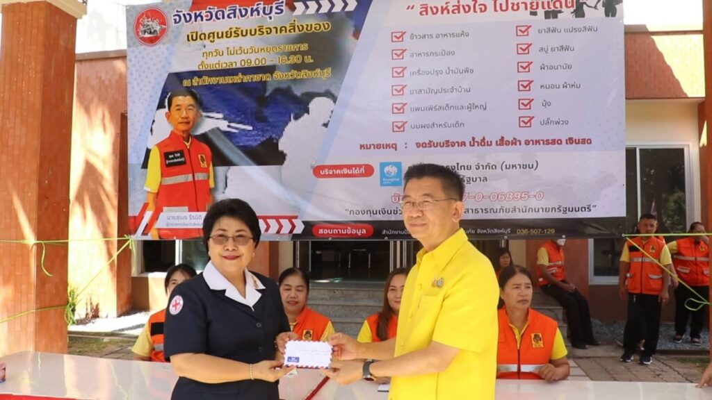 วันอังคารที่ 29 กรกฏาคม 2568 เวลา 9.00 น.นายสุเมธ ธีรนิติ ผู้ว่าราชการจังหวัดสิงห์บุรี เปิดศูนย์รับบริจาคสิ่งของ”สิงห์ ส่งใจไปชายแดน” ณ สำนักงานเหล่ากาชาดจังหวัดสิงห์บุรี โดยมีนางวาสนา ธีรนิติ นายกเหล่ากาชาดจังหวัดสิงห์บุรี หัวหน้าส่วนราชการ ปภ.สิงห์บุรีและสมาชิกเหล่ากาชาดจังหวัดสิงห์บุรี ร่วมเปิดศูนย์รับบริจาคสิ่งของจำเป็น อาทิ อาหารแห้ง น้ำดื่ม ยารักษาโรค ยากันยุง ผ้าอ้อมเด็ก เครื่องนอน เพื่อช่วยเหลือประชาชนที่ได้รับผลกระทบบริเวณชายแดนไทย – กัมพูชา สามารถบริจาคได้ทุกวัน ไม่เว้นวันหยุดราชการ ตั้งแต่เวลา 09.00 – 16.30 น. ณ สำนักงานเหล่ากาชาด จังหวัดสิงห์บุรี