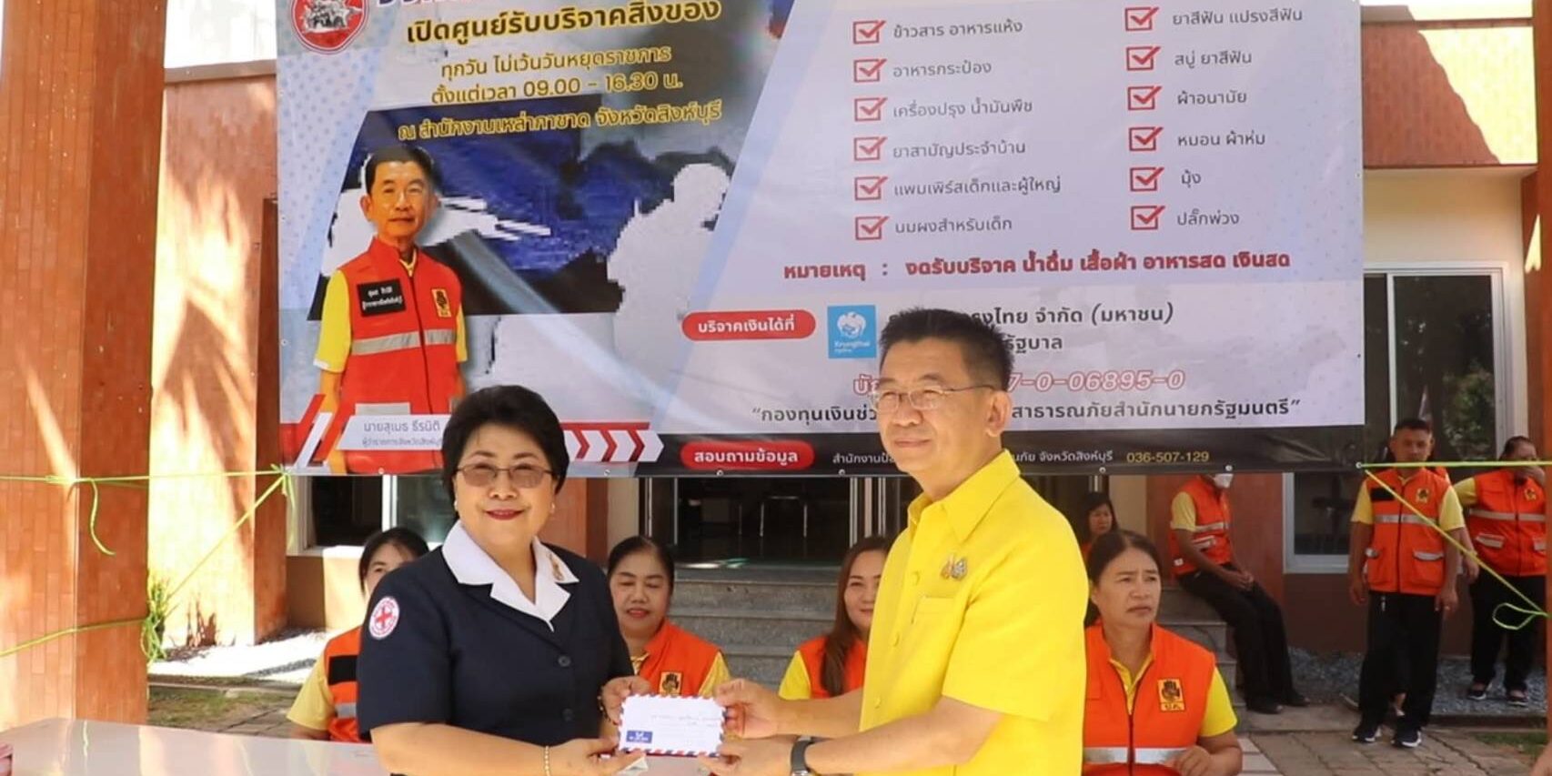 สำหรับผู้ที่จะบริจาคเป็นเงิน สามารถบริจาคได้ผ่านทางบัญชี บมจ.ธ.กรุงไทย ชื่อบัญชี “กองทุนเงินช่วยเหลือผู้ประสบสาธารณภัย สำนักนายกรัฐมนตรี” เลขที่บัญชี 067-0-06895-0