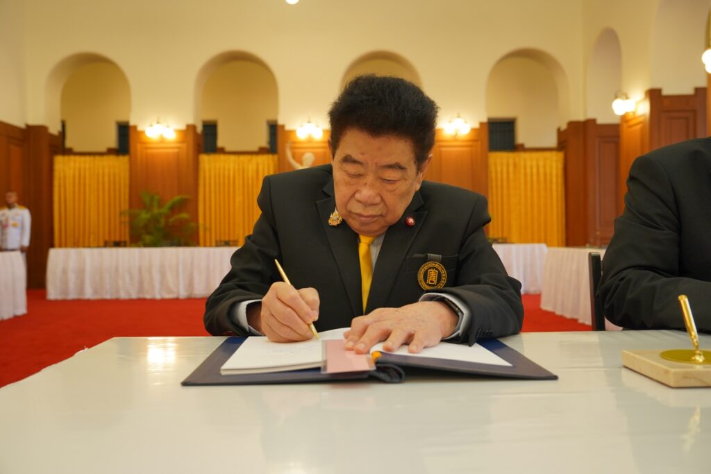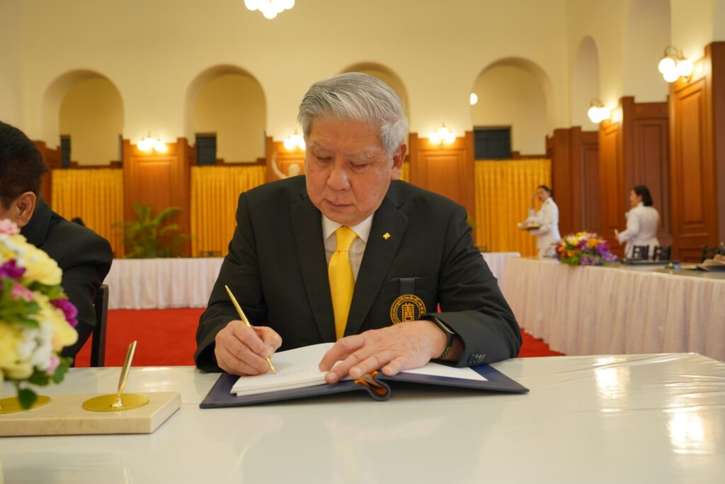 วันจันทร์ที่ 28 กรกฎาคม พ.ศ.2568 : มูลนิธิป่อเต็กตึ๊ง นำโดย นายสัก กอแสงเรือง รองประธานกรรมการฯ,นายวิรุฬ เตชะไพบูลย์ ที่ปรึกษาประธานกรรมการฯ,นายจารุรัตน์ คุณัตถานนท์ กรรมการและเหรัญญิกฯ,นายวิศิษฎ์ ลิ้มประนะ กรรมการฯ พร้อมด้วยคณะกรรมการฯ นำคณะผู้บริหารมูลนิธิป่อเต็กตึ๊ง และหน่วยงานในเครือ นำแจกันดอกไม้ทูลเกล้าทูลกระหม่อมถวายหน้าพระบรมฉายาลักษณ์ และลงนามถวายพระพรชัยมงคล พระบาทสมเด็จพระเจ้าอยู่หัว เนื่องในโอกาสวันเฉลิมพระชนมพรรษา 28 กรกฎาคม 2568 ณ ศาลาสหทัยสมาคม ในพระบรมมหาราชวัง กรุงเทพฯ
